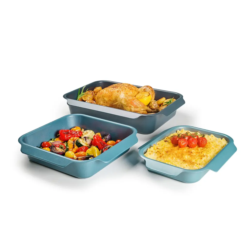Joseph Joseph Nest Oven 3-Piece Nesting Non-Stick Roasting Pan Set - Blue
