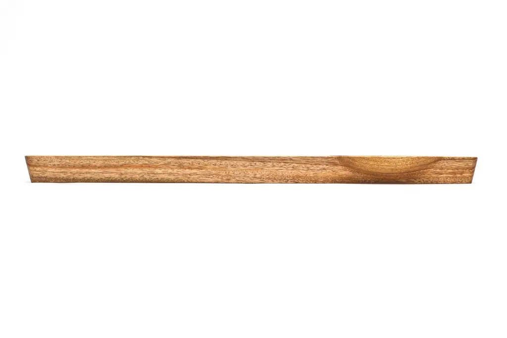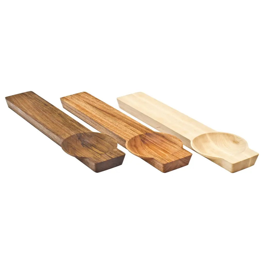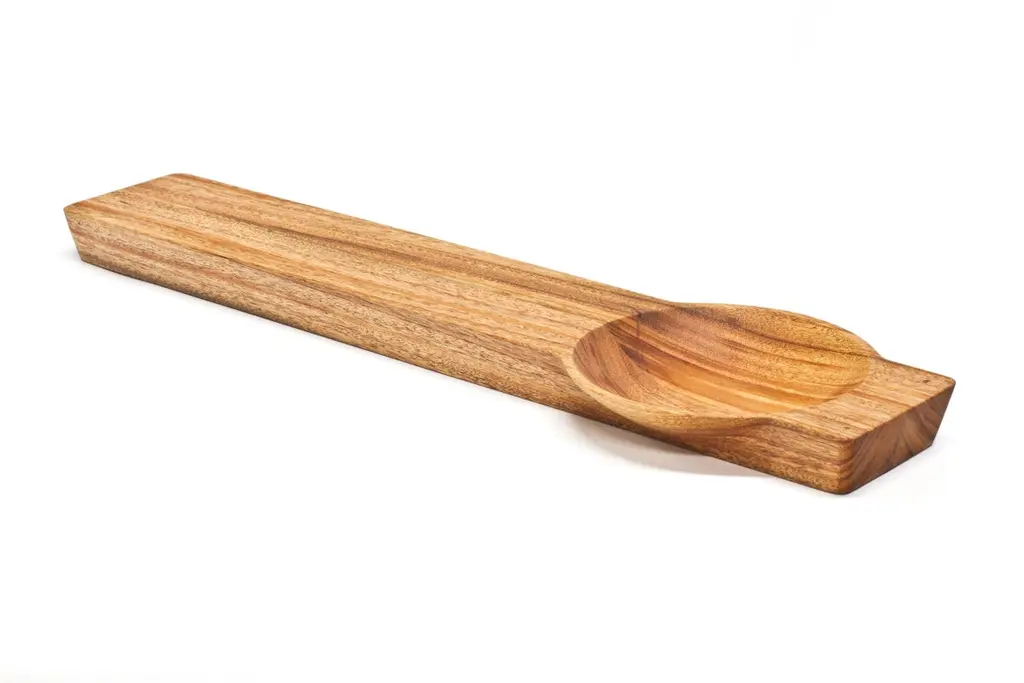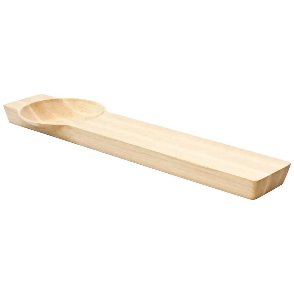 The Kafi 1 (Icelandic for submerged) hors d'oeuvre board has an elongated proportion that adds a dynamic appearance to any setting large or small. Recessed bowls provide a perfect showcase for olives, nuts, and fruits while the extended beveled plank is perfect for a variety of cheeses.About the designers: Tricia Wright and Martin Leugers are a San Francisco-based Industrial Design team who believe that building and making are integral to the design process. Their favourite projects transform a “problem” into an opportunity for invention, a way to create something unique, a chance to make life happier. Their goal is to design objects that do good in the world by focusing on products that directly improve people’s lives. Above all, as designers; they are practical, they make ideas a reality. Tricia and Martin have been recognized for their innovative designs, from high-tech to toys. They have been awarded multiple patents and numerous consumer and industry awards, including Toy of the Year.This Listing is for (One) Kafi 1 cheeseboard in mahogany. Due to the unique nature of wood, your piece may vary from the images shown.