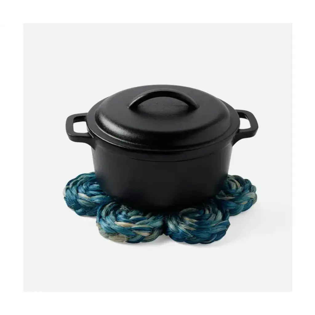 Keenan Deep Blue/bleached, Bubbles, Pot Trivets, Abaca, Set/2