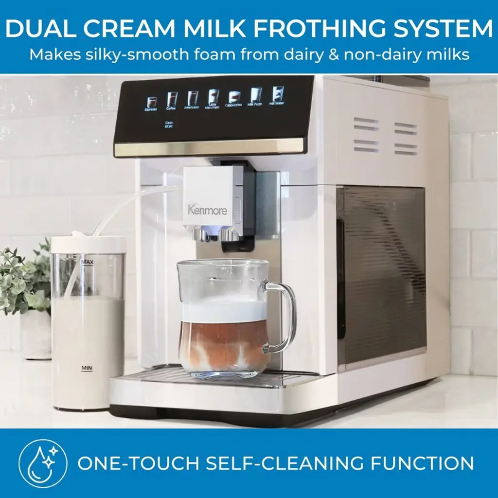 Kenmore Super Automatic Espresso Coffee Machine Dual Cream System White
