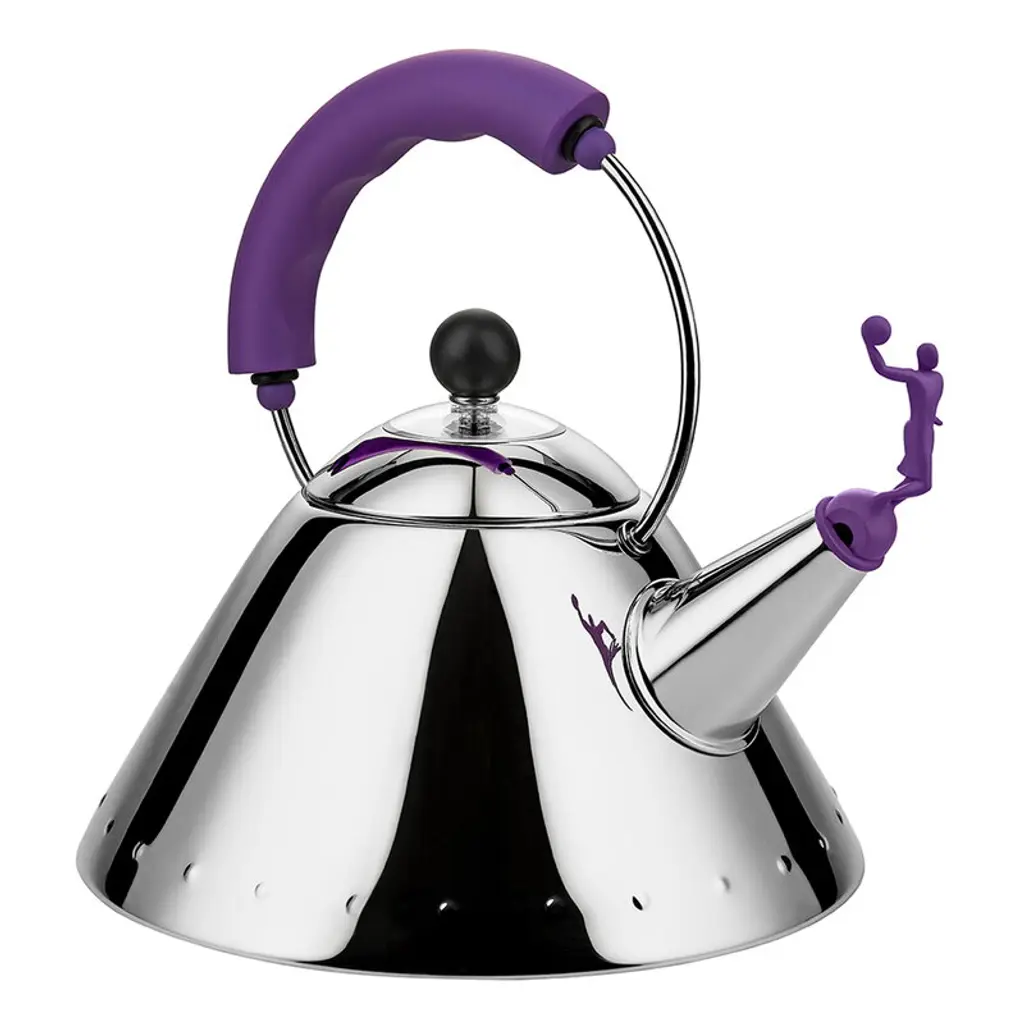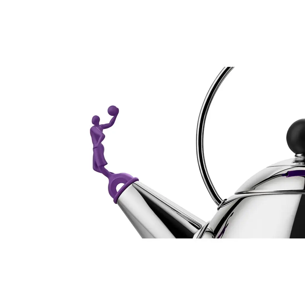 Alessi's kettle 3909 celebrates American design and basketball culture while honoring the memory of the late fashion designer Virgil Abloh. Created in collaboration with Virgil Abloh Securities, the kettle 3909 is a reimagined version of the Alessi kettle 9093, which was designed by the American architect and designer Michael Graves back in 1985. In kettle 3909, the original bird-shaped whistle has been replaced with a purple-colored basketball player who notifies you when the water has reached boiling point. Also, the handle and knob are colored in purple. The steel kettle may also be used on induction hobs, and its wide base makes the water heat up faster. This special edition is released as a numbered edition of 9.999 pieces.