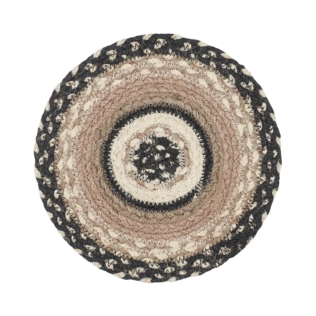 PRIMITIVE TRIVET: Our Kettle Grove Jute 15 inch Trivet features alternating solid and mixed braids in a classic country color palette with a stenciled star design.,TEXTURED MATERIAL: The single trivet is crafted with 80 percent jute and 20 percent other fibers, adding both style and function to your country decor.,PROTECTS SURFACES: Unique fiber and braiding protect surfaces from heat, scratches, and condensation.,EASY CARE: Due to its handmade nature, carefully spot clean with warm water as needed.,COORDINATING ACCESSORIES: Pair this primitive trivet with matching placemats, coasters, and more from the Kettle Grove Jute collection.