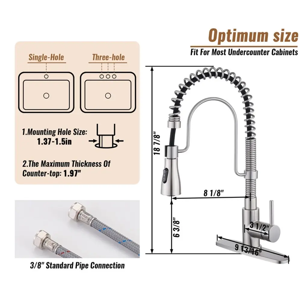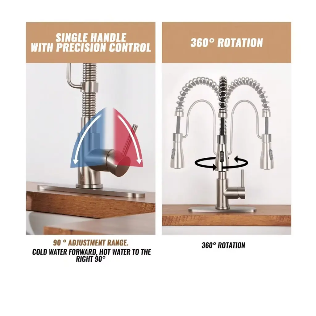 This CASAINC kitchen spring faucet will add a high-quality upgraded look to your kitchen. Whether it be for daily cooking or cleaning, our product will meet your needs. Choose CASAINC for quality and reliability while giving your kitchen a fresh new look.