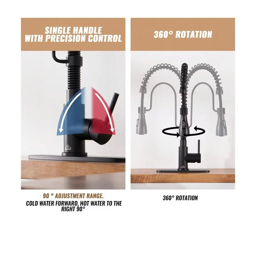 This CASAINC kitchen spring faucet will add a high-quality upgraded look to your kitchen. Whether it be for daily cooking or cleaning, our product will meet your needs. Choose CASAINC for quality and reliability while giving your kitchen a fresh new look.