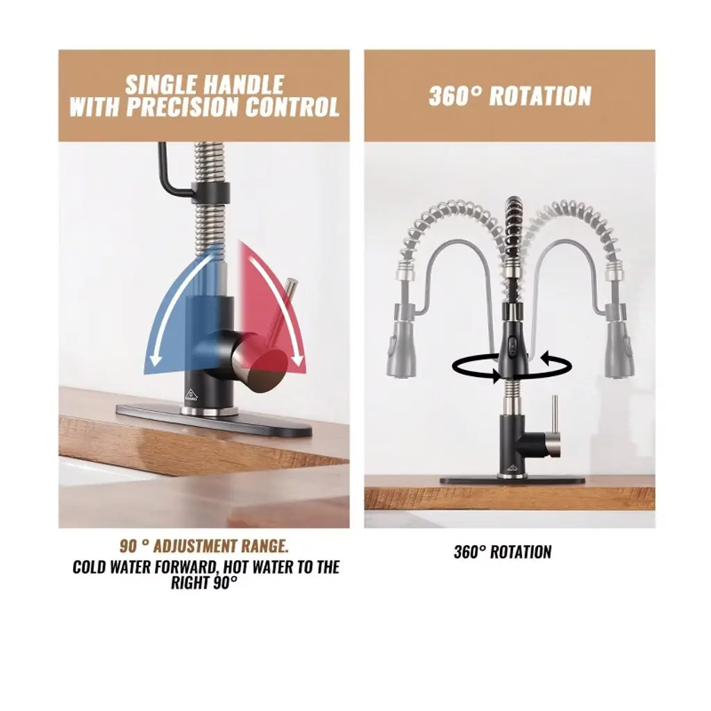 This CASAINC kitchen spring faucet will add a high-quality upgraded look to your kitchen. Whether it be for daily cooking or cleaning, our product will meet your needs. Choose CASAINC for quality and reliability while giving your kitchen a fresh new look.