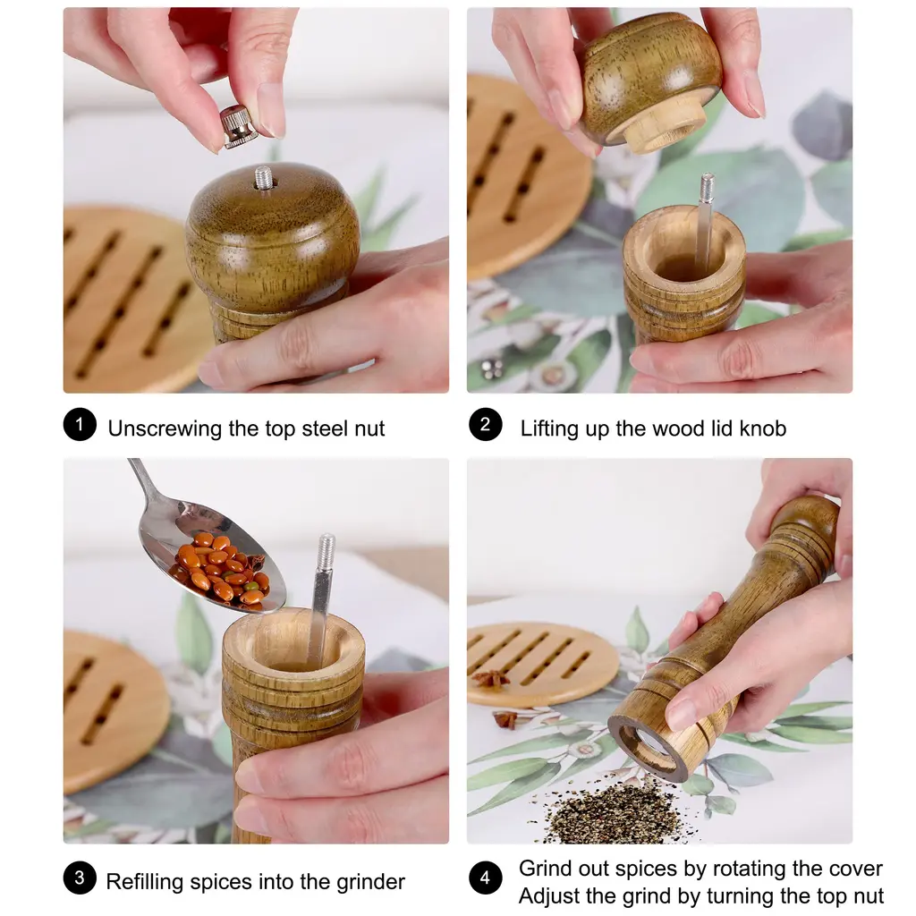 Color: Wood Color; Material: Wood,MetalPackage Content: 1 x Salt Pepper ShakerProduct Name: Salt Pepper ShakerNet Weight: 192gTotal Size: 21 x 5.5cm/8.3" x 2.2"(H*D)Machine cut, carbon steel precision mechanism for pepper and salt, creates a smooth turn.Conveniently select between fine or coarse granules by adjusting the knob on top.Hand wash with damp cloth, do not submerge.With a few twists of the top, it grinds salt, pepper or any dry spice down to a savory seasoning for your prized dishes.