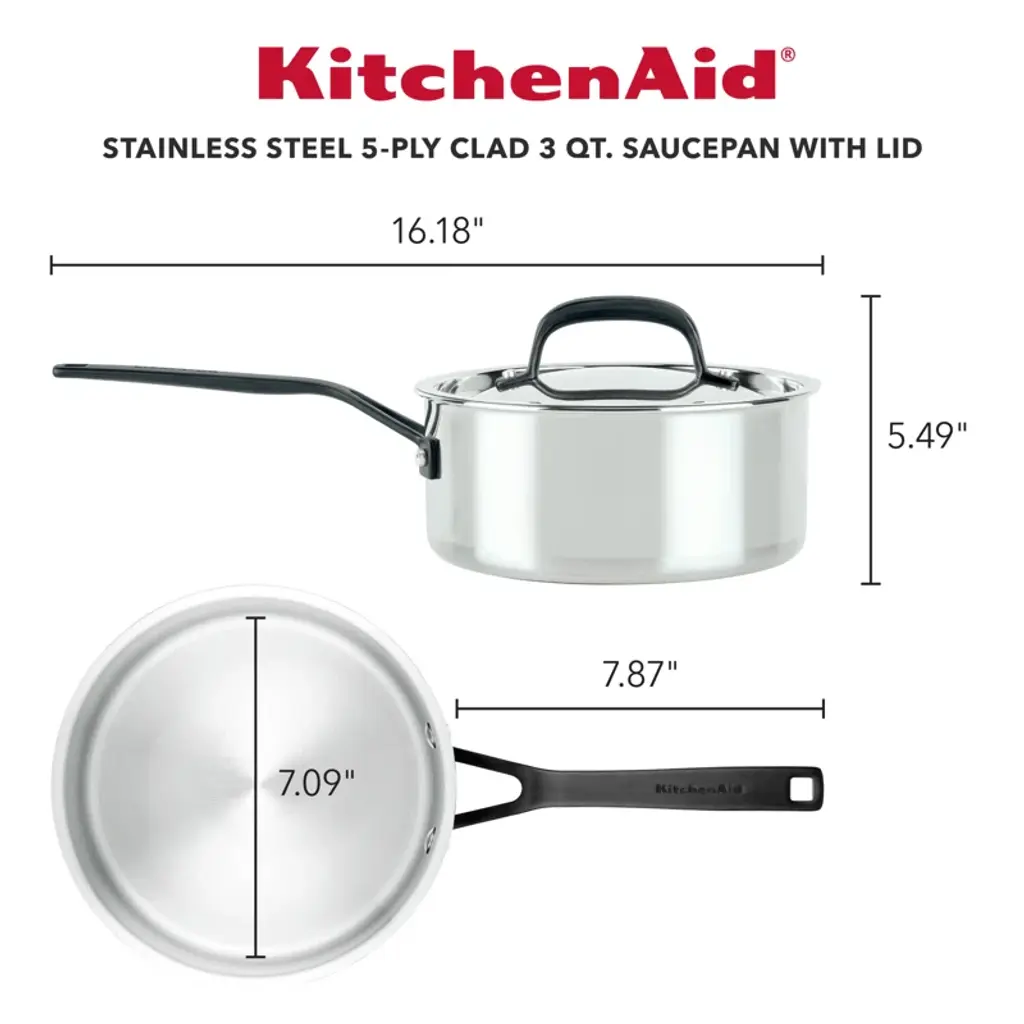 Kitchenaid 5-Ply Clad Stainless Steel Saucepan With Lid, 3-Quart, Polished Stainless Steel