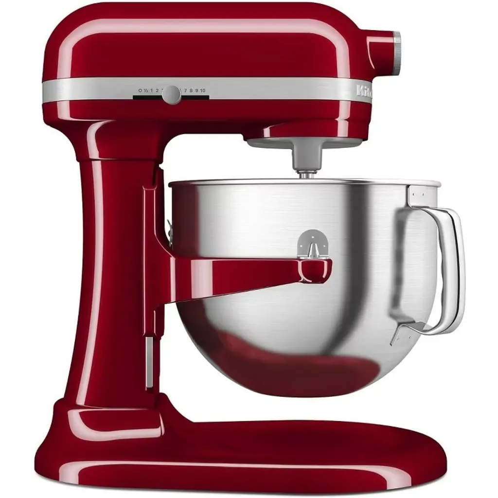 Up your culinary caliber with 2x the power in the bowl than our Tilt Head Stand Mixer.* Professional-style performance paired with a 3-point locking bowl provides you with stability for mixing heavy, dense ingredients. Designed with 11 distinct speeds, including 1/2 speed, you'll have power and control from high to low, and everything in between. So no matter if you're folding, kneading, mixing, shredding, or beating, the KitchenAid® 7 Quart Bowl-Lift Stand Mixer is designed to take it all on. To amplify your creativity, explore 10+ stand mixer attachments, each with the power to open a world of untapped cooking techniques, experimentation and inspiration.** *Compared to KSM150 when measuring peak HP in the bowl; above speed 2.**Attachments sold separately. Key Features 11 Speed Variable Selections 7 Quart Mixing Bowl Capacity 1/2 Speed Designed For Folding Double Flex Edge Beater Bowl-Lift Design Empire Red Finish