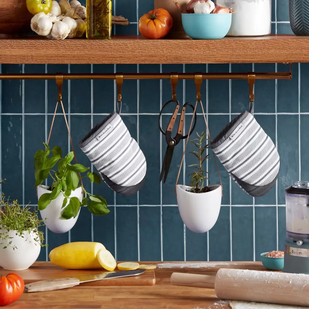 Safely handle your hot pots and pans with the KitchenAid Albany 2-Piece Mini Oven Mitt Set in Beet. Each mitt measures 5.5 inches wide by 8 inches long for easy on-and-off use while handling hot dishes. The durable, cotton fabric on the outside with polyester lining offers comfort and insulation. Clear, printed silicone on the mitts is heat resistant and ensures a more secure grip. A convenient hanging loop allows you to easily display or store these machine-washable mitts when not in use.