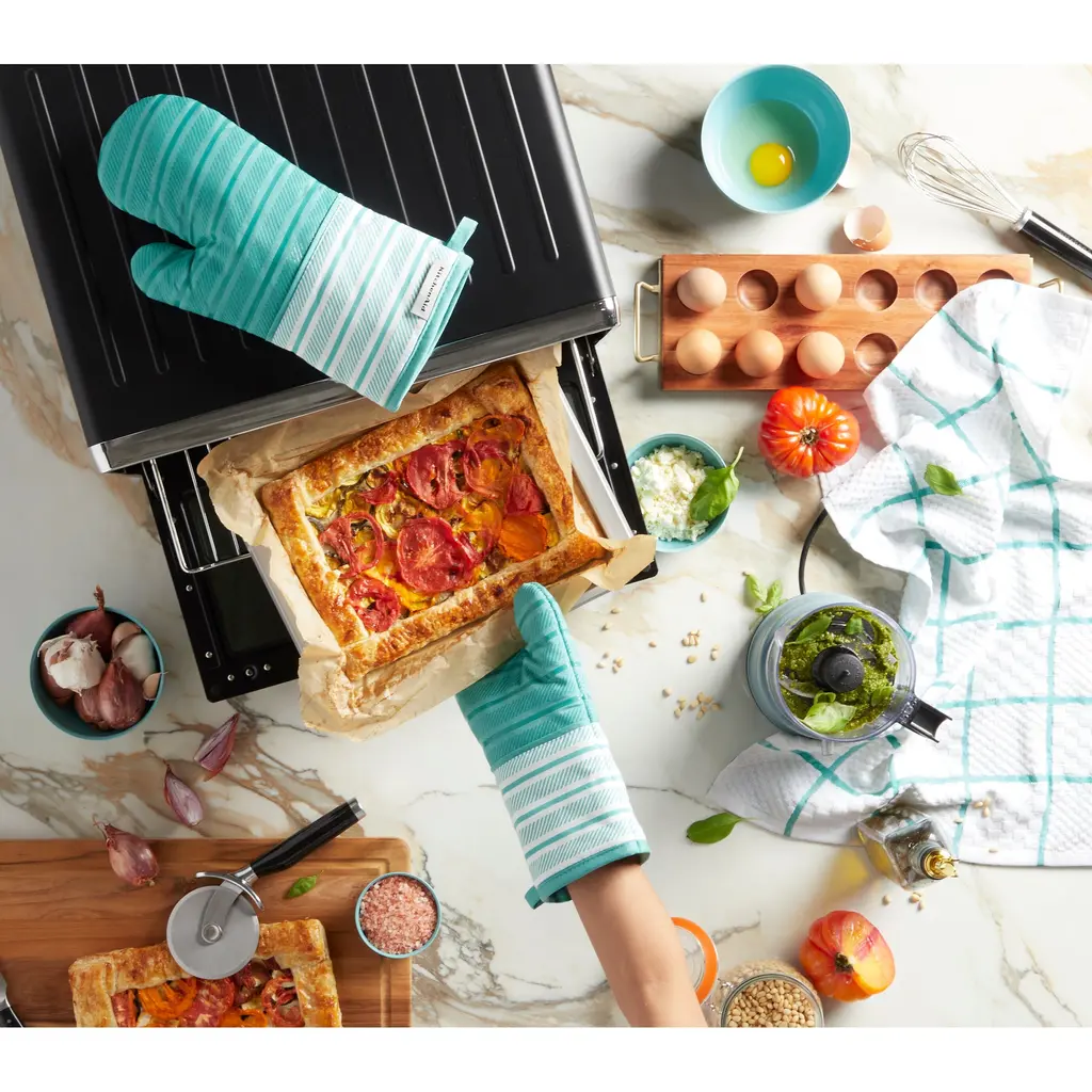 Kitchenaid Albany Oven Mitt Set 2-Pack - 7"x13" - Aqua Sky