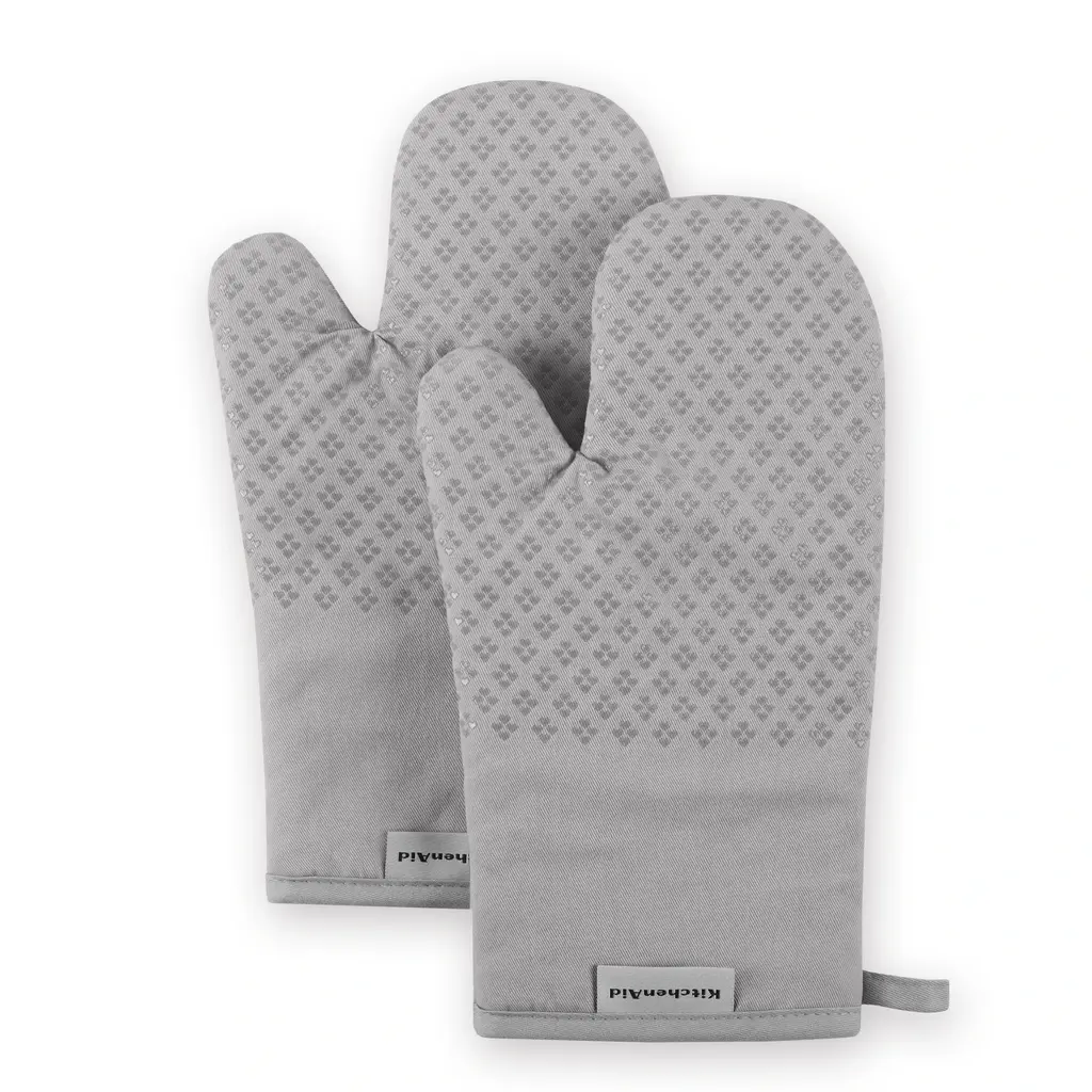 If you're not a huge fan of long waits at ERs or searing, deforming, cruel heat and misery generally, then look no further. Shield your hands with this delightful twosome: oven mitts with wholly cotton shells and heat-resistant silicone print grips.Features: