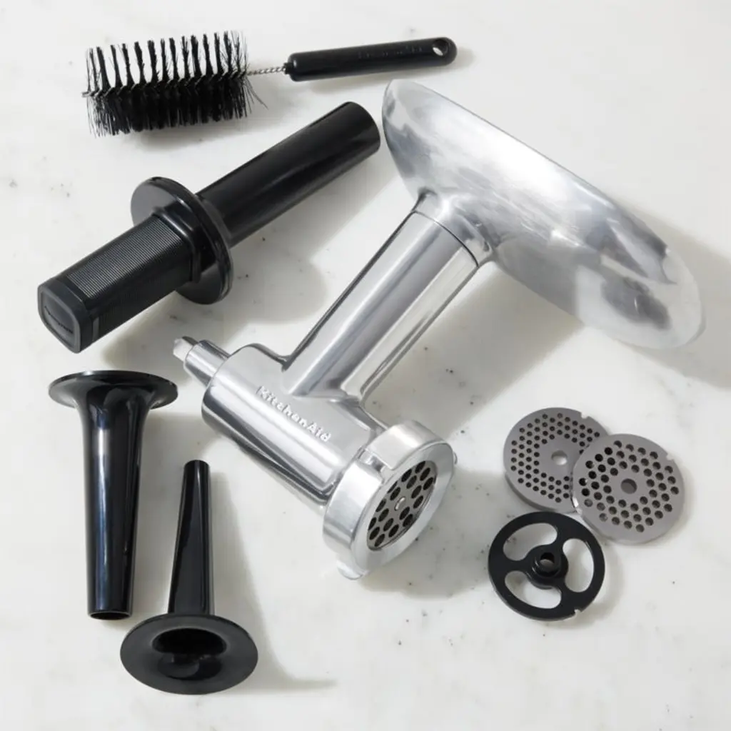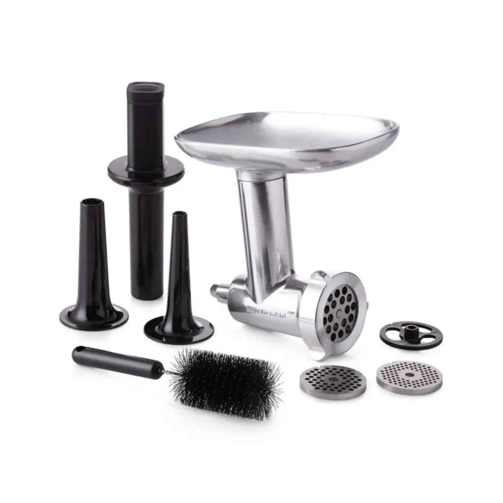 Prepare homemade sausage, ground beef and pates with this stainless steel grinder attachment for your KitchenAid stand mixer. Pre-chill the grinder in the refrigerator or freezer to maintain a cold grinding temperature for a neat and clean grind every time. Includes fine, medium and coarse grinding plates sausage stuffer tubes and a large food tray to process more ingredients at one time. The food grinder is packed and organized inside its own storage case, designed for easy storage and quick access.View all KitchenAid products