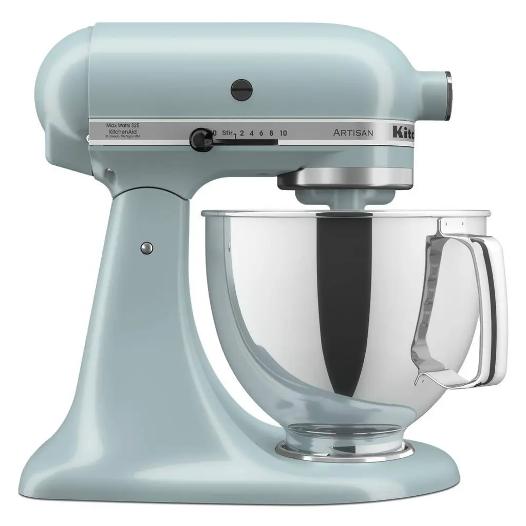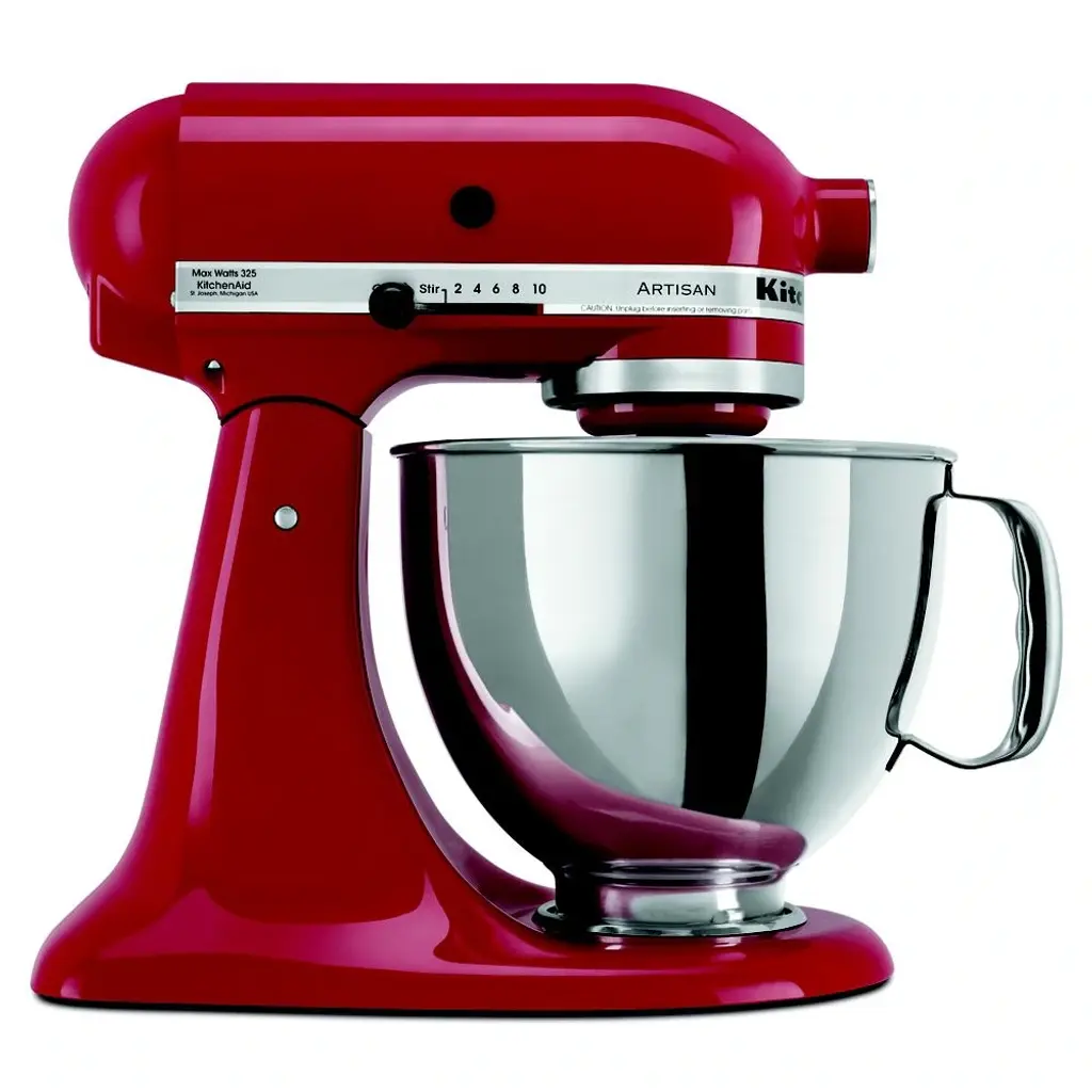 The Refurbished KitchenAid® Artisan® Series 5 Quart Tilt-Head Stand Mixer is perfect for all your baking and cooking needs. This durable stand mixer has 10 speeds, making it easy to knead, mix, and whip ingredients to perfection. With a capacity of 9 dozen chocolate chip cookies or shredded chicken for Taco Tuesday, you'll be able to entertain friends and family with ease. With over 10 optional hub-powered attachments available, you can easily get creative with your cooking.Features: