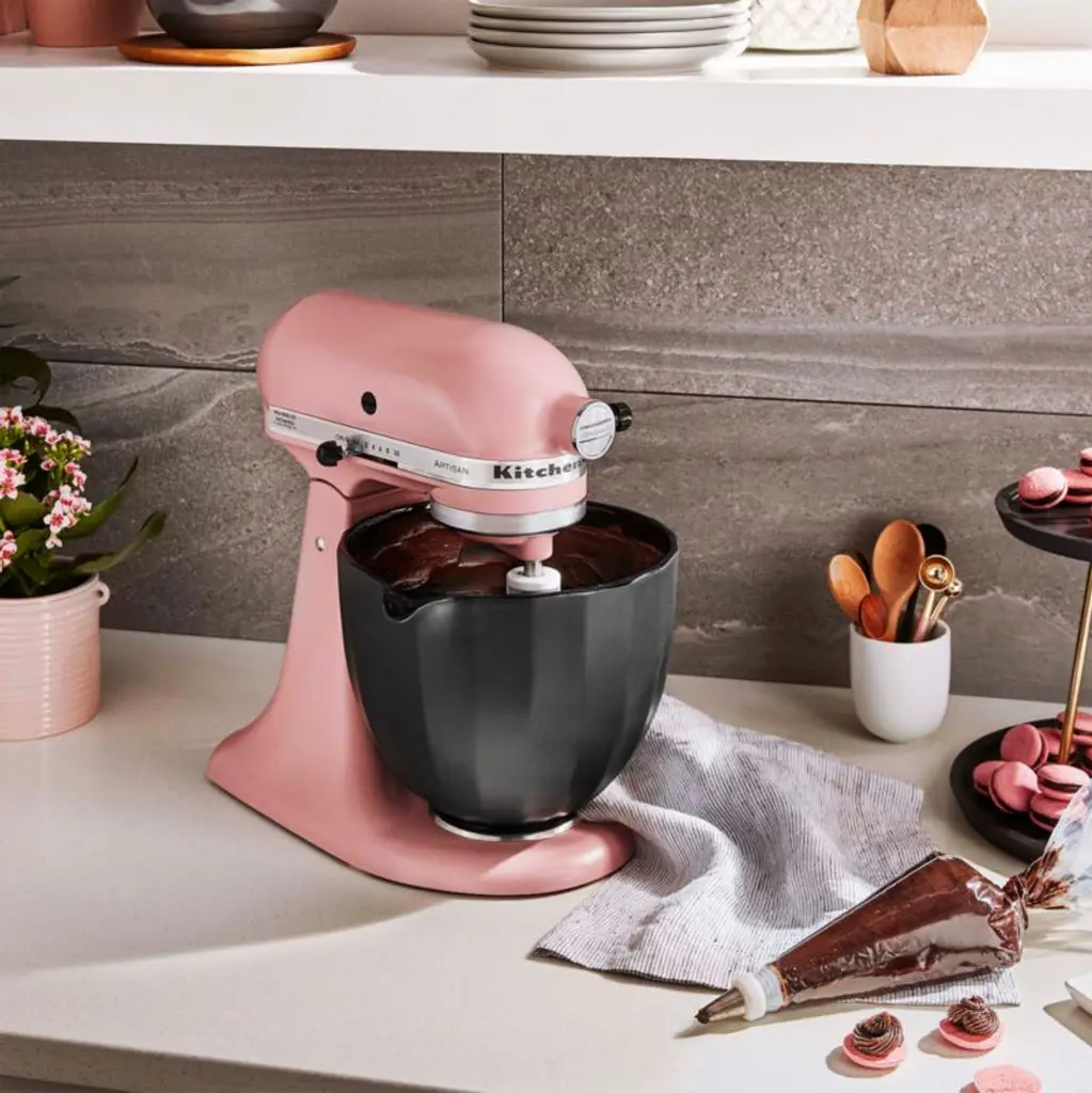 Customize your KitchenAid stand mixer with this gracefully faceted bowl made of titanium-reinforced ceramic glazed in modern matte black. Ideal for chilling cookie dough or melting ingredients, the bowl has great heat and cold retention and may be used in the freezer, microwave and oven. This black shell bowl fits all KitchenAid 4.5- and 5-quart tilt-head stand mixers and resists chipping, cracking, crazing and staining.KitchenAid has been creating high-quality kitchenware for over a century.View all KitchenAid products