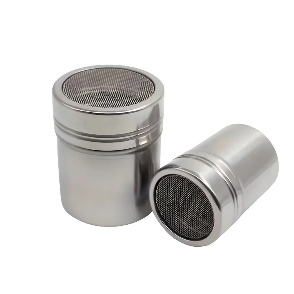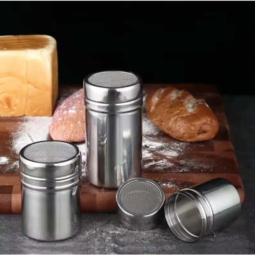 This stainless steel sugar shaker is crafted from food-grade, anti-odor, and rust-resistant material, making it a durable and hygienic choice for your kitchen. It features a fine mesh top for evenly distributing powdered ingredients like icing sugar, cocoa, cinnamon, or flour over baked goods and drinks. Easy to clean with a polished, stain-resistant surface—simply rinse, wipe, and dry.