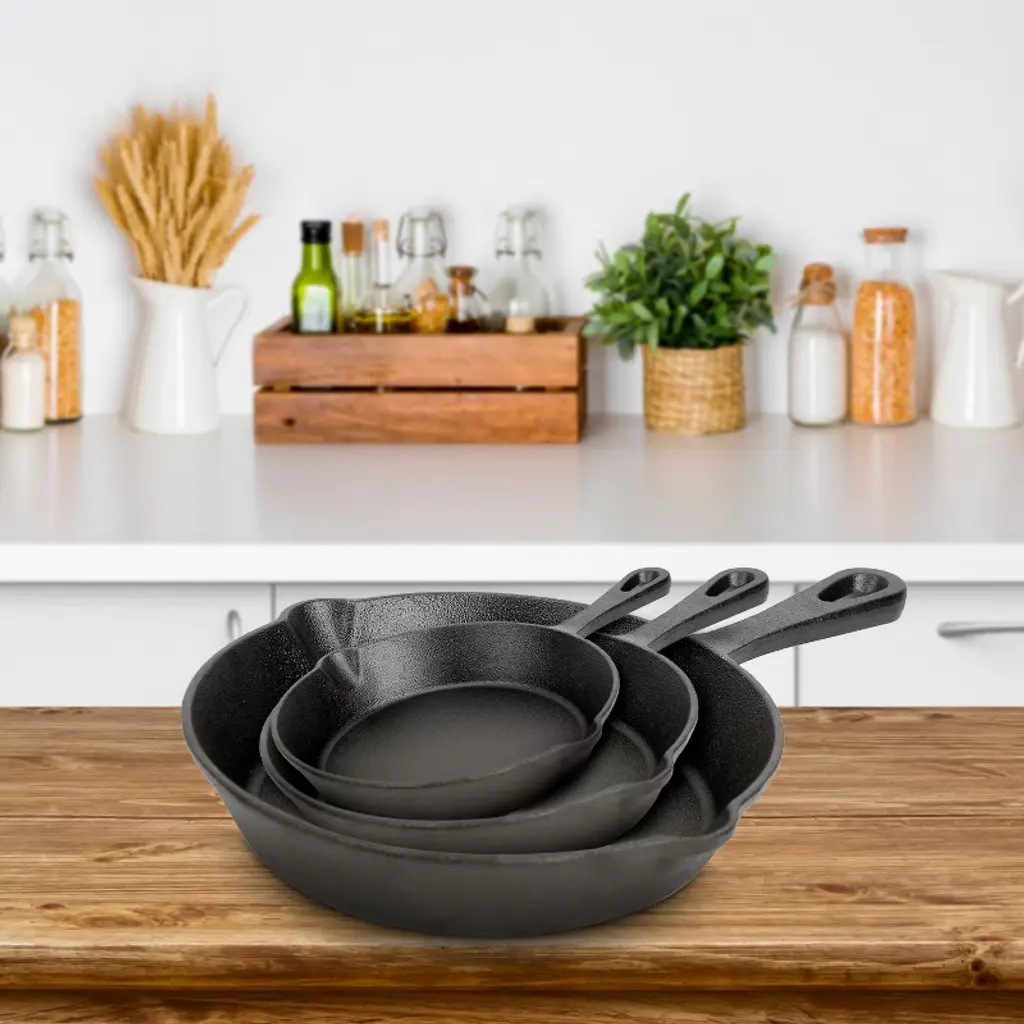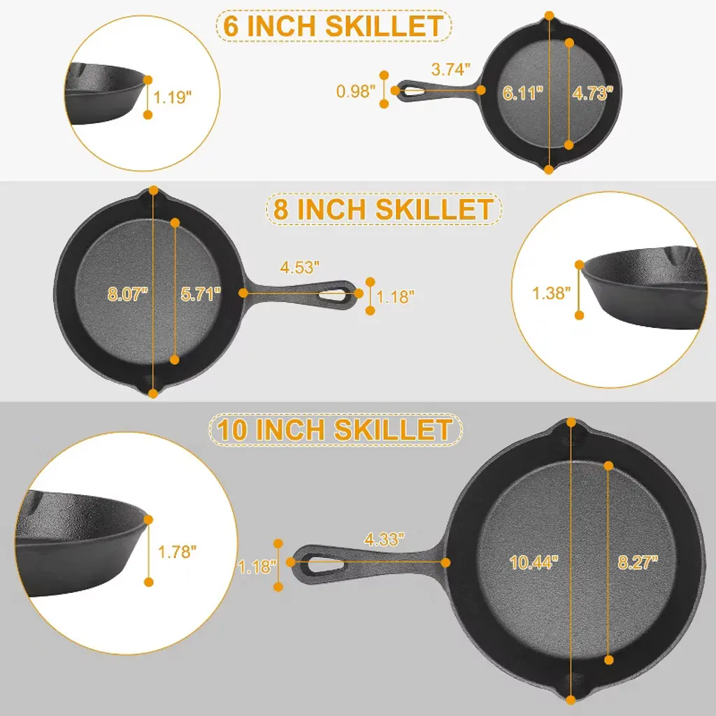 Ktmbdw 3 Skillet Bundle 6 Inches And 8 Inches With 10 Inch Set Of 3 Cast Iron Frying Pans Non-stick Oven Safe Cookware Heat-resistant Frying Pan,black
