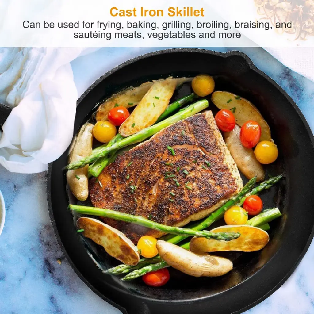 Do you love cooking and want your food exactly right? cast-iron skillet set is your choice. With our cast-iron skillets now cook all you can. Whether it be steaks, paninis, vegetables or anything you like your tummies to be fed. The perfectly sized wide diameters allow for ample cooking spaces, making them compatible with oven, stove, grill or over a campfire. In addition, these cast-iron skillets can be used on various heat sources including gas, electric, induction and ceramic-glass top stoves, and ovens.