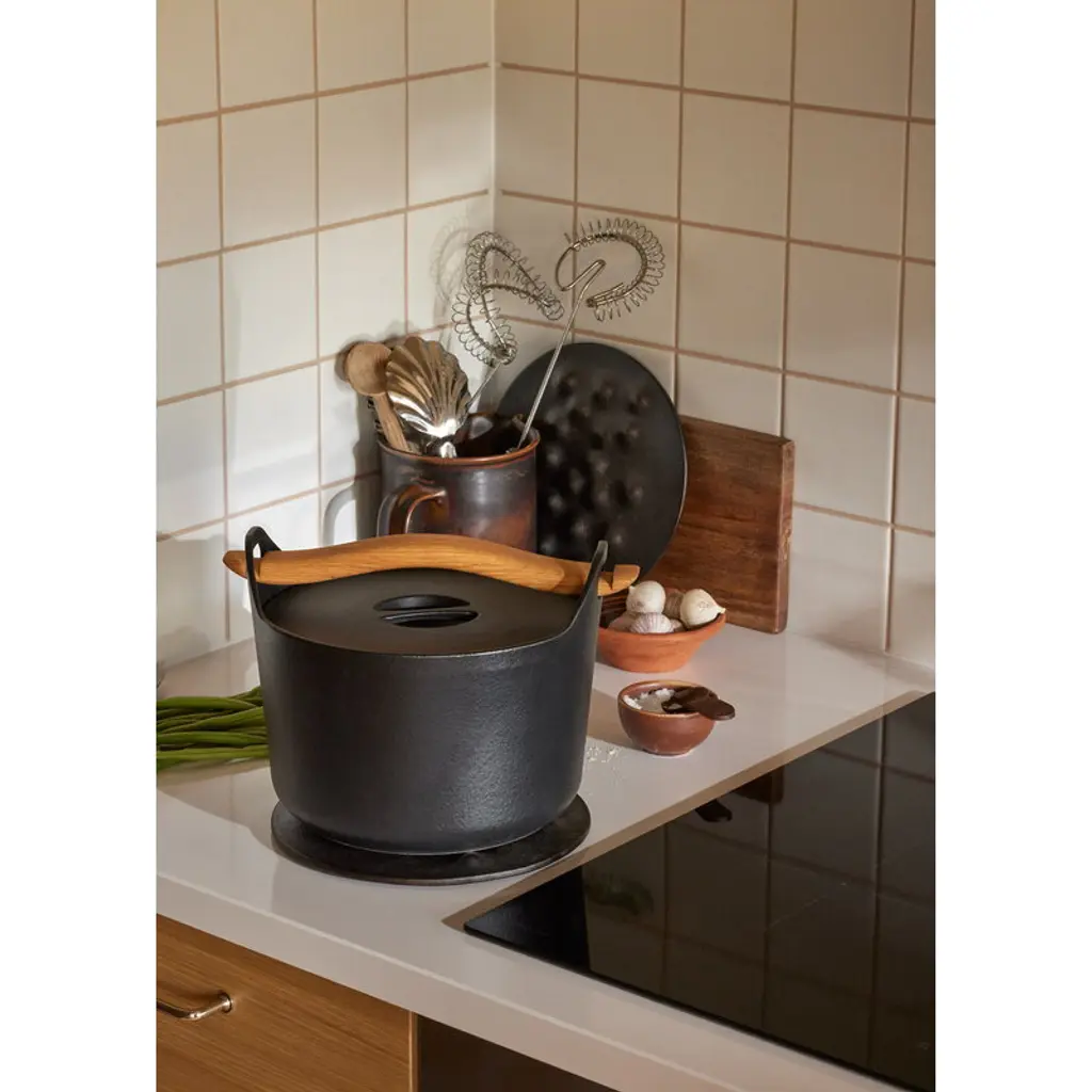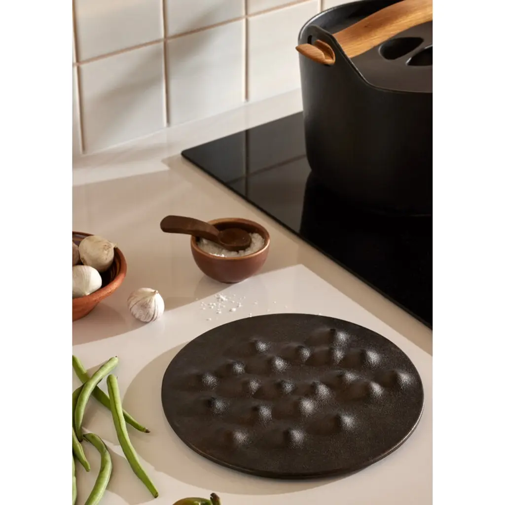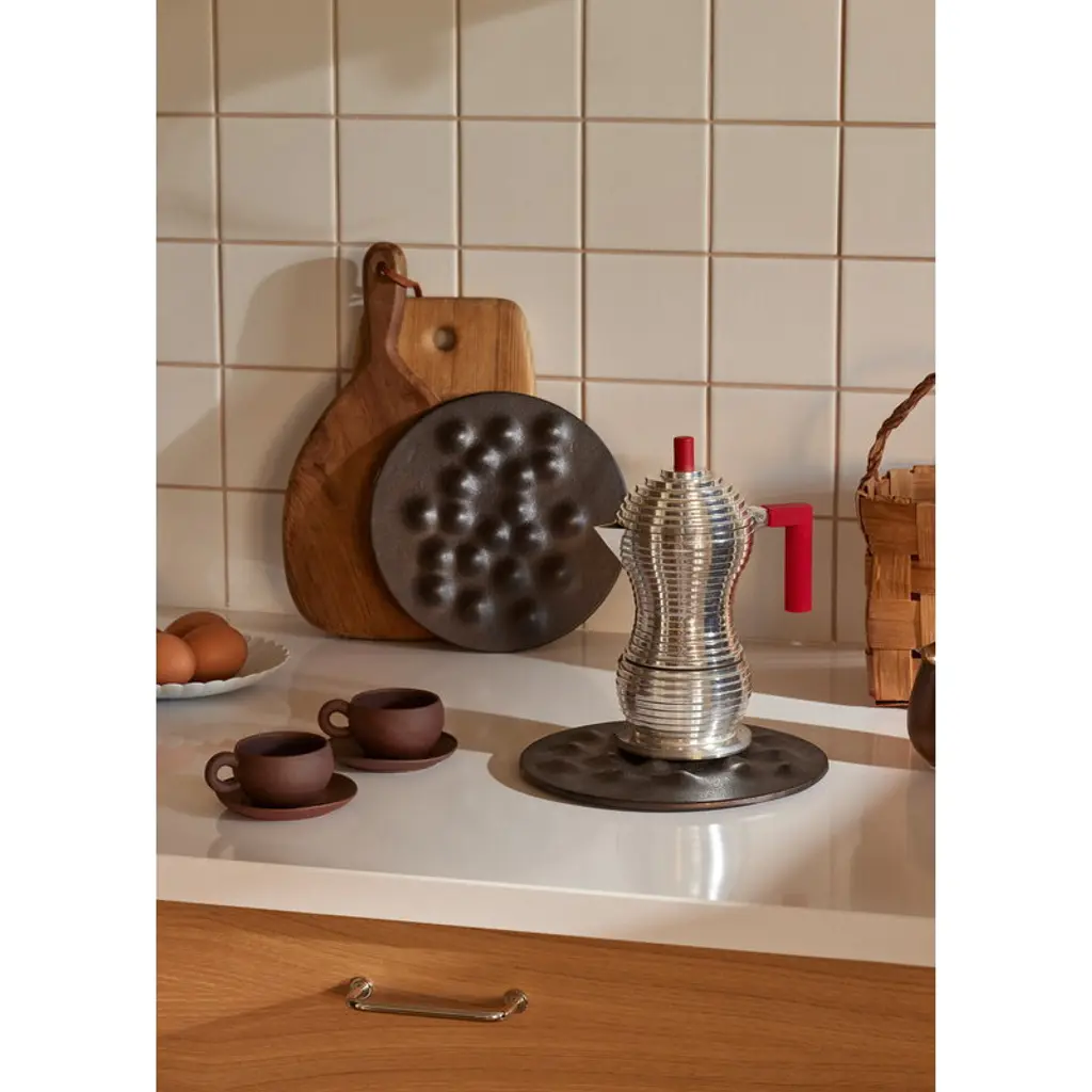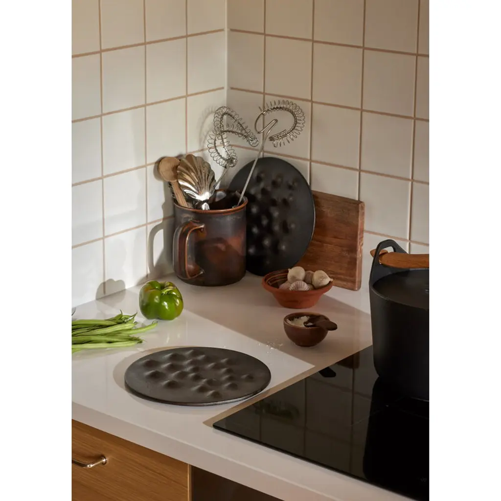 Kumpu by Finnish brand Pidät is a cast iron trivet designed by Mika and Julie Tolvanen – a piece so sculptural, it’s worth leaving on display between meals. The name Kumpu, Finnish for “mound”, refers to the raised forms that create airy gaps between the table and hot dishes, protecting surfaces from heat and scratches while giving serving pieces a subtle lift. Made in Sweden from locally sourced recycled cast iron, Kumpu is finished with natural cork pads. Just like traditional cast iron cookware, the surface has been heat seasoned and can be re-seasoned at home if needed, making it a timeless kitchen companion built to last for generations.