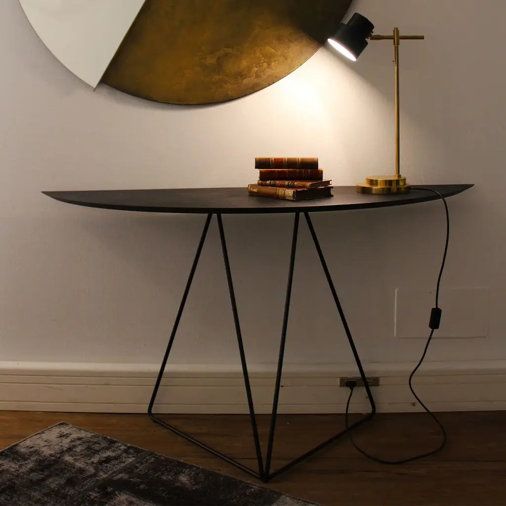 Lama Medium Semi-Ellipse Console Table With Bronze Spatulated Resin Top
