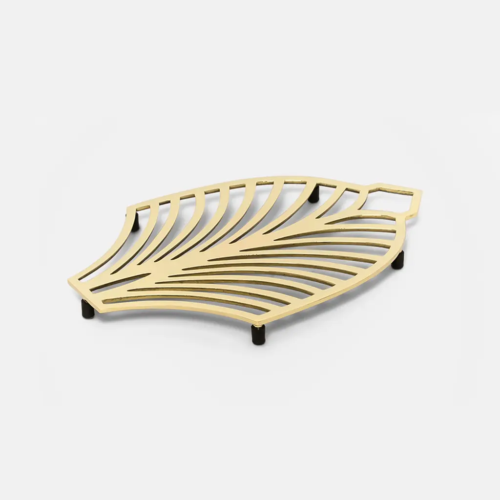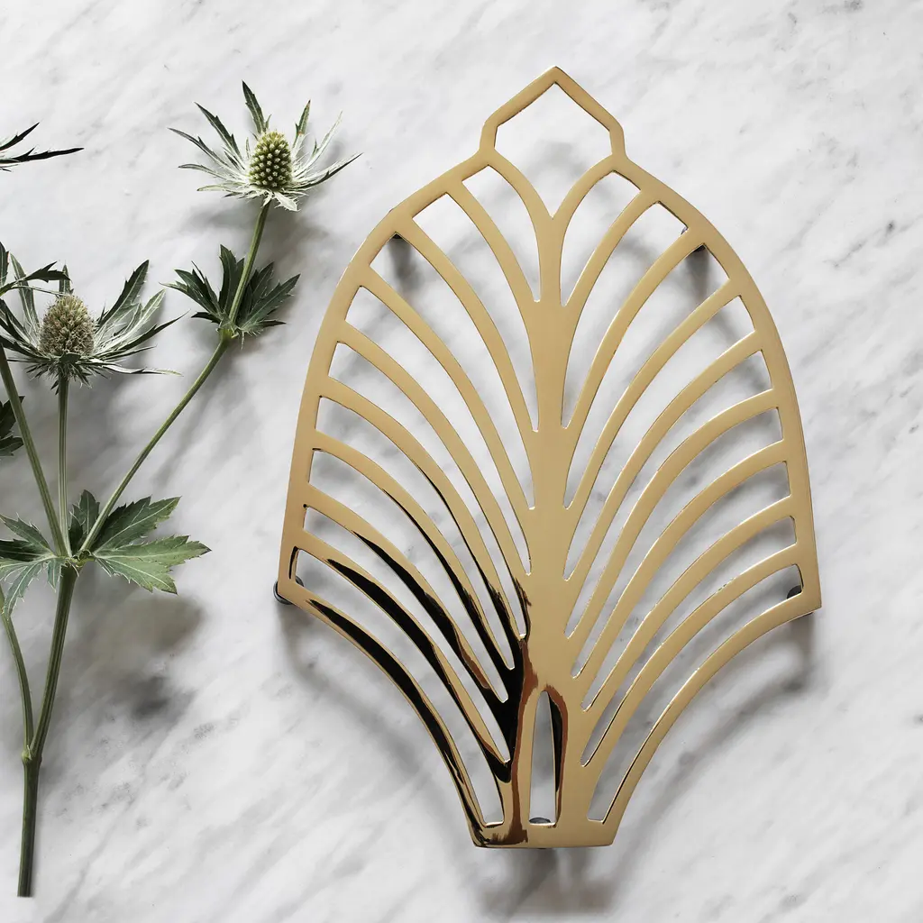 Inspired by Art Deco, the Lands Ends Trivet brings refined elegance to your kitchen and dining room. Swedish studio Objecthood has created the design with delicate curved lines that reference Art Deco floral patterns. Like other products from heritage brand Skultuna, this trivet is beautifully crafted from solid brass. This sand cast brass product features a polished surface on top and a natural, untreated finish underneath. Over time and with use, the brass will develop a unique patina and will become one of a kind. Please keep in mind that brass conducts heat and may damage delicate surfaces. This trivet should not be used with extremely hot pans or pots.