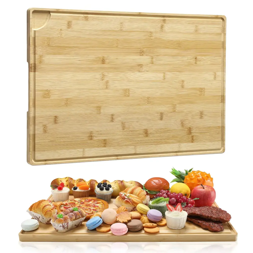 Large Bamboo Cutting Board With Deep Juicy Groove, 0.8'' Thick Cutting Board With Back Inner Handle