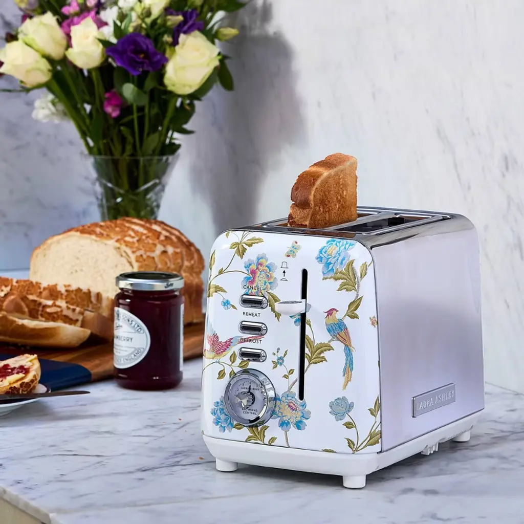 Laura Ashley 2 Slice Toaster White: Stainless Steel, 850w, Compact Design, 1-year Warranty