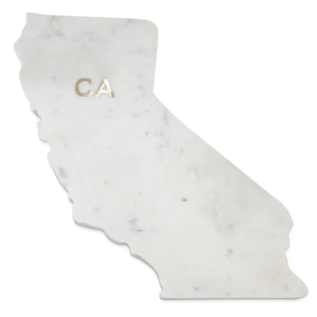 Lg Polished Marble "Arizona" Cutting Board W/brass State Abbreviation - White - White