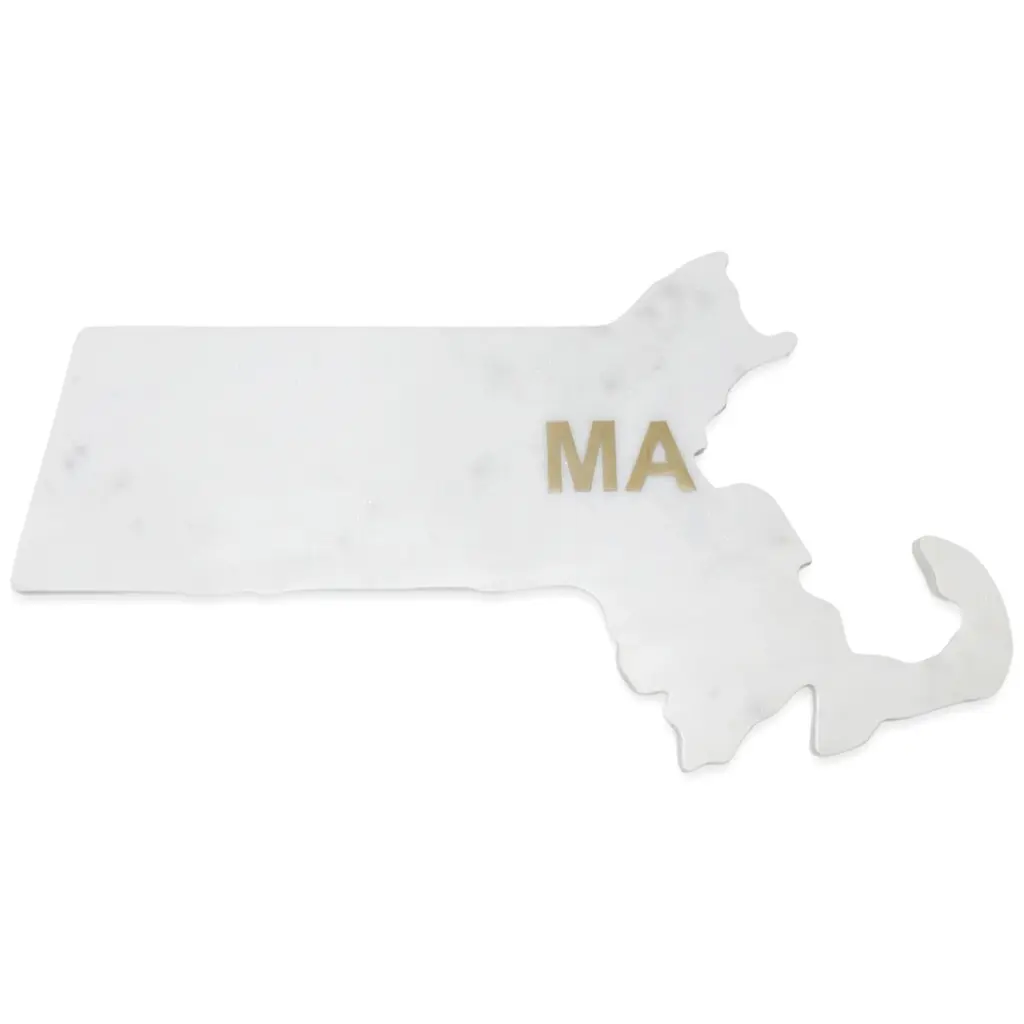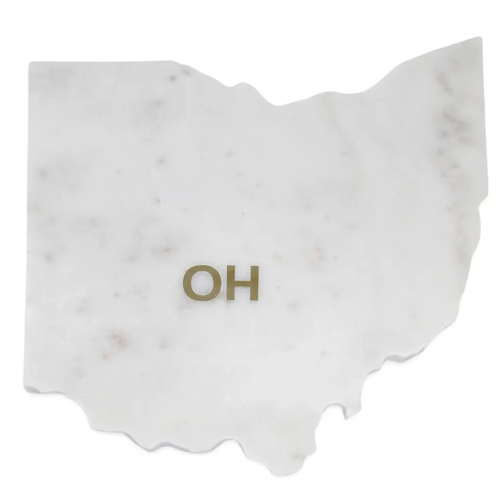 Lg Polished Marble "Nebraska" Cutting Board W/brass State Abbreviation - White - White