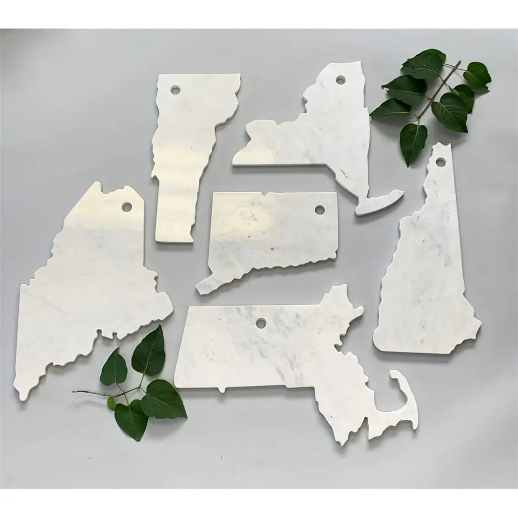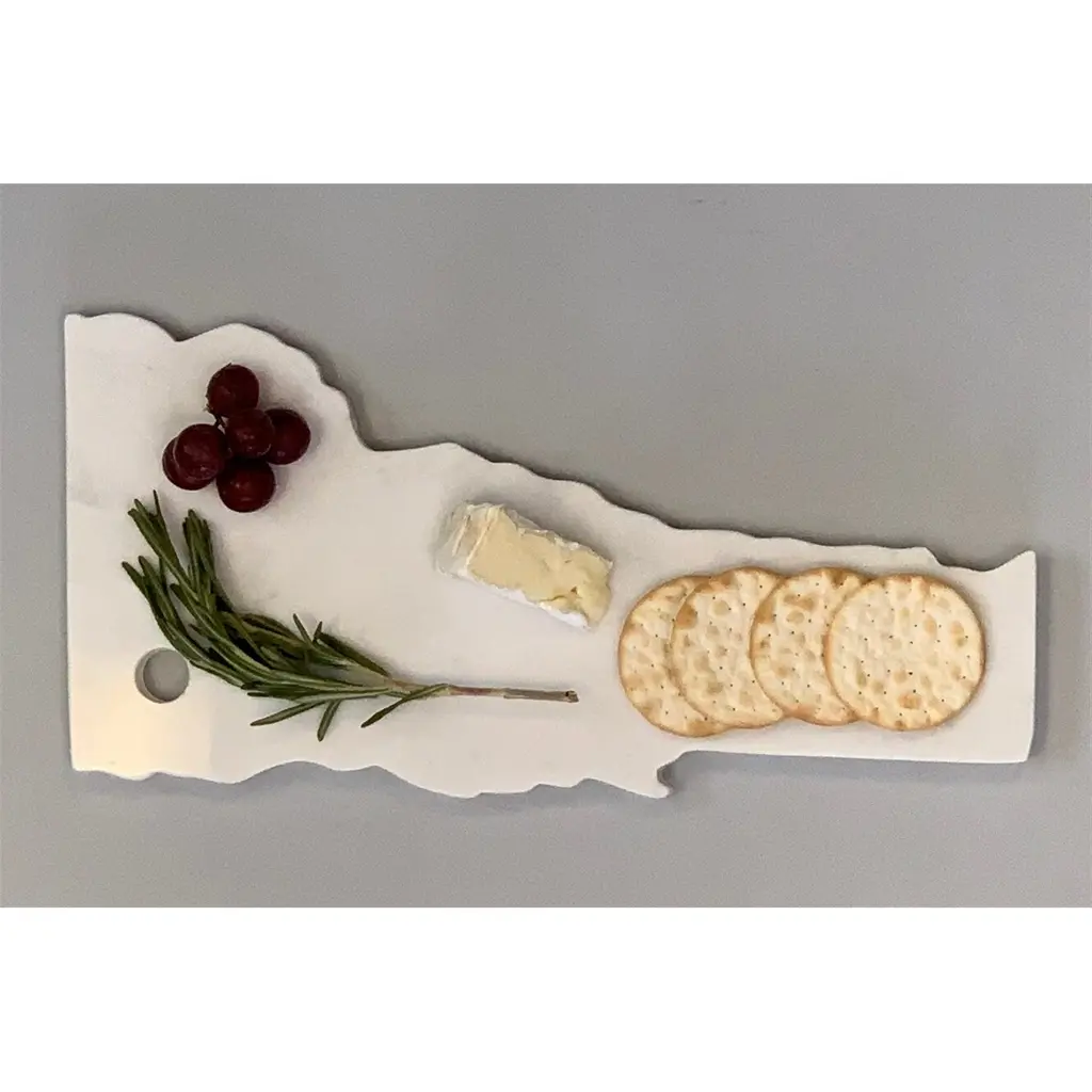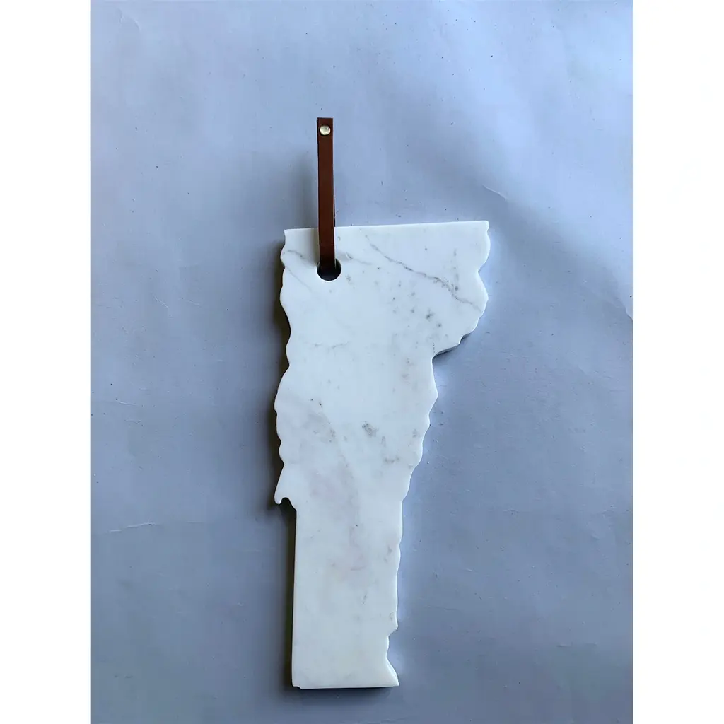 This polished marble state cutting board is a sleek and stylish kitchen essential crafted from high-quality marble. It combines the natural elegance of marble with practical functionality, providing a durable and hygienic surface for cutting and serving food. With its smooth, polished finish and unique veining patterns, it adds a touch of luxury to any culinary space while offering a sturdy platform for meal preparation. Ideal for both practical use and aesthetic appeal, it effortlessly blends form and function in the kitchen.