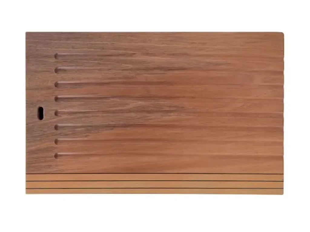 Linear is a walnut wood cutting board made from a set of vertical elements that guarantee a unique aesthetic and unparalleled practicality of use. Here too, walnut reigns supreme, with its original grain and its hardness as an essence, practical for the intended use. Linear is the home collection characterized by sober lines and versatility of use. The boxes developed as storage compartment and as kitchen organizers may be used as single support elements, or in combination with other accessories of the wall storage. The organizers and accessories are distinguished by the minimalism of their volumes, enhancing the wood percpetion and making these furnishings timeless.