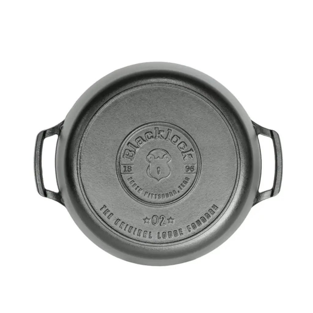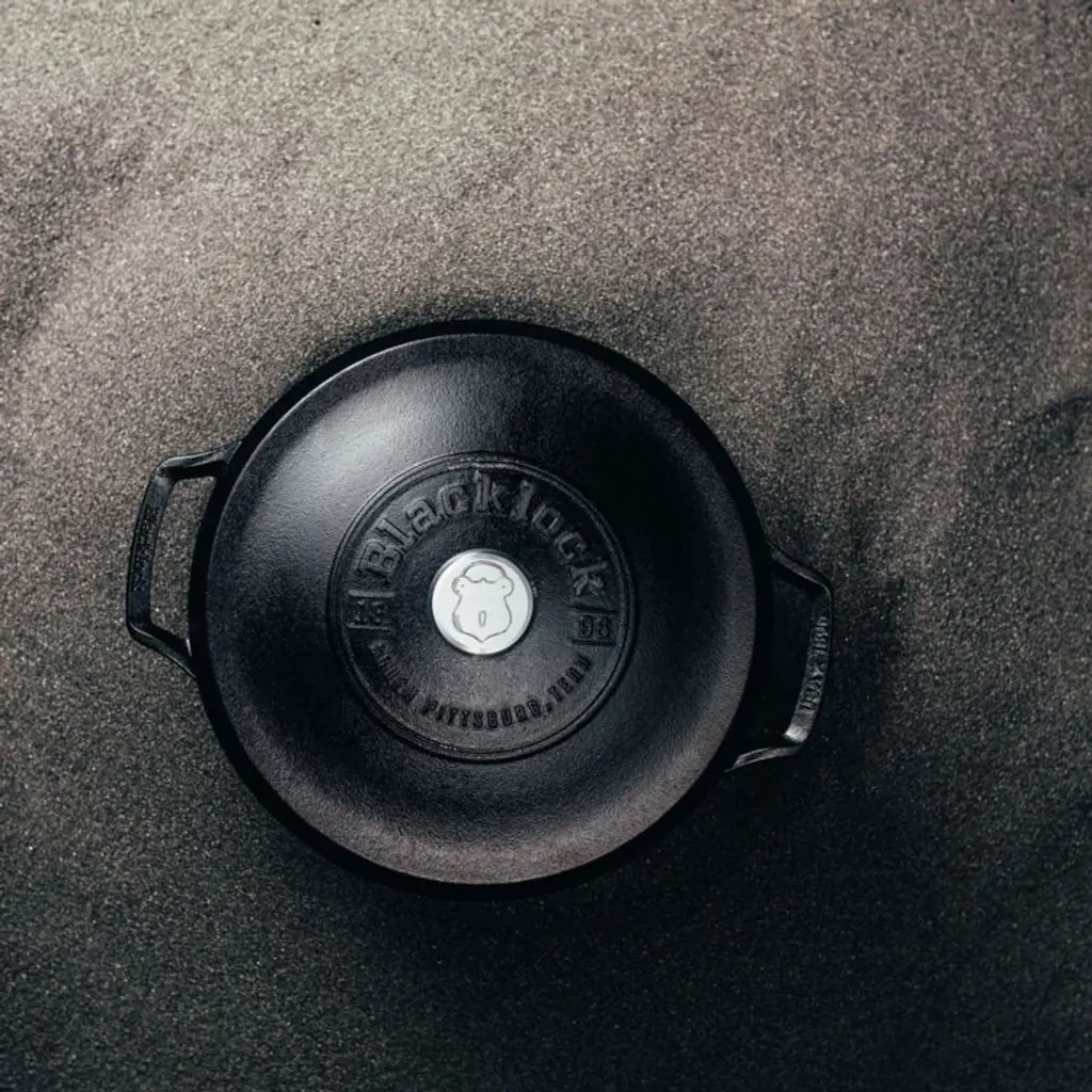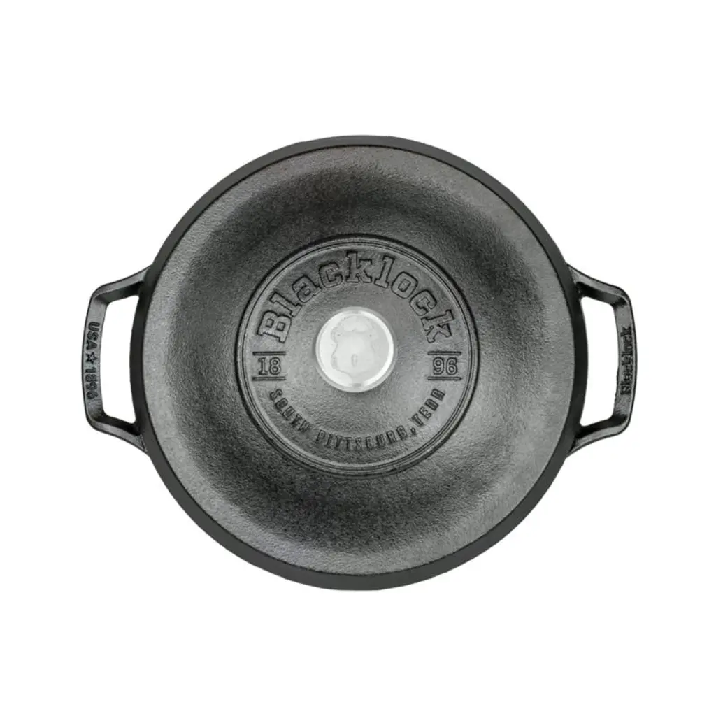 The Blacklock collection updates classic Lodge cast iron cookware for the modern kitchen. Lighter than traditional cast iron, this Dutch oven is triple-seasoned for a naturally non-stick finish. This secure lid topped with an aluminum knob locks in moisture and heat, and sloped side walls accommodate spatulas with ease. Elevated helper handles and an aluminum knob make the pan and lid easy to lift. Use the Dutch oven to roast chicken, bake bread and make soups.Each piece of Lodge cast iron cookware is backed by the company's over 125 years of experience.
