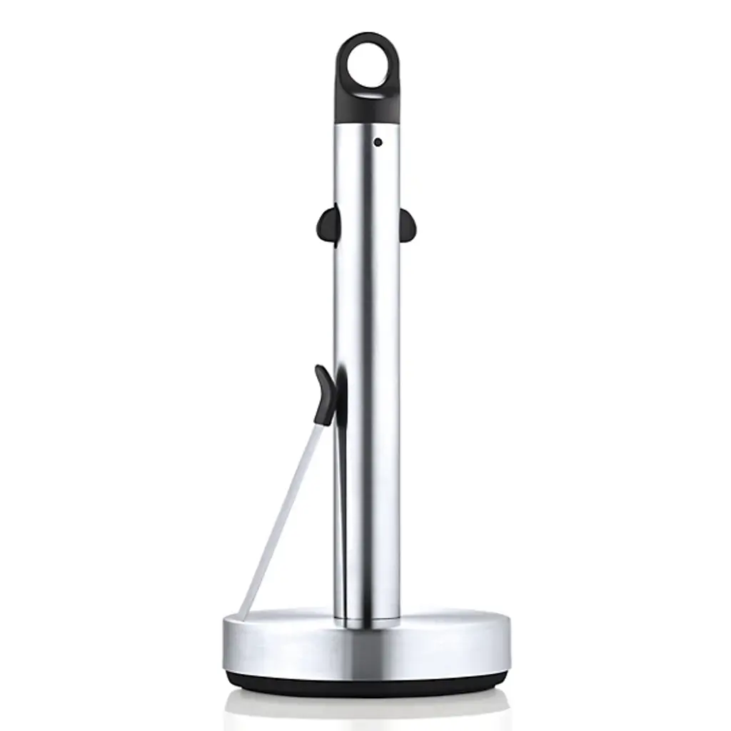 The one-handed paper towel holder. Aiding in cleaning up messes since its inception, the Blomus LOOP Paper Towel Holder is more than a place to rest a paper towel roll. The design is exceptionally functional and surprisingly good looking. The heavily weighted base and the spring action arm make it possible to extract a paper towel with a single hand meaning you won't have to make a huge mess trying to clean up the original mess. The intuitive design is a big help around the kitchen.