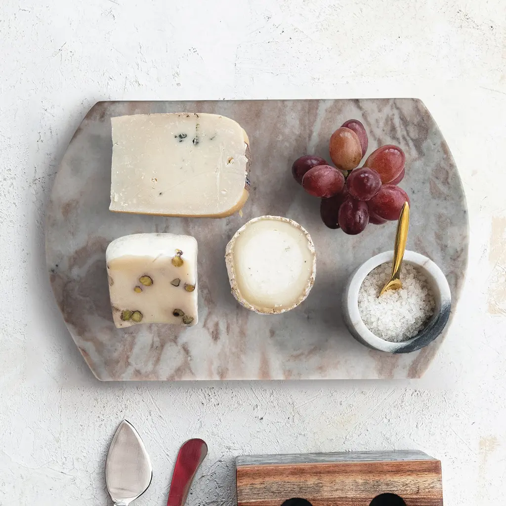 This cutting board is a great accent piece for a modern home. Made out of marble and featuring a neutral buff color, this piece is a beautiful statement piece and is perfect for preparing and serving foods