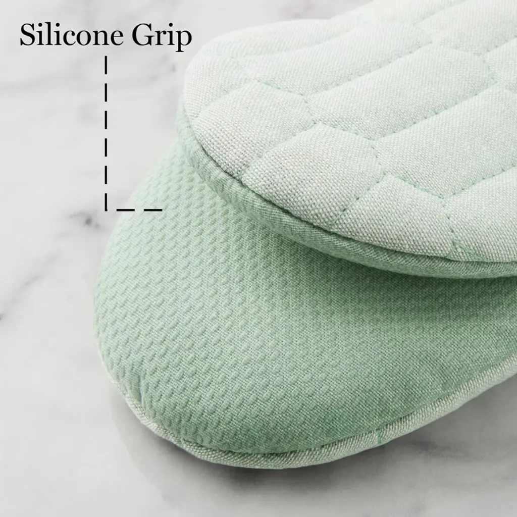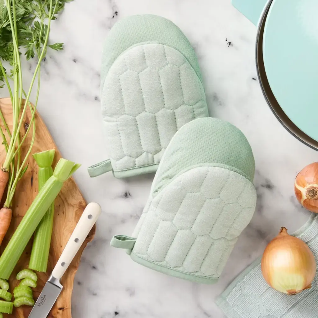 Martha Stewart Honeycomb Quilted Chambray Mini Oven Mitt 2-pack, 100% Cotton, Flexible Non-slip Silicone Grip, Heat Resistant, Mint Green , 5.5"x8"