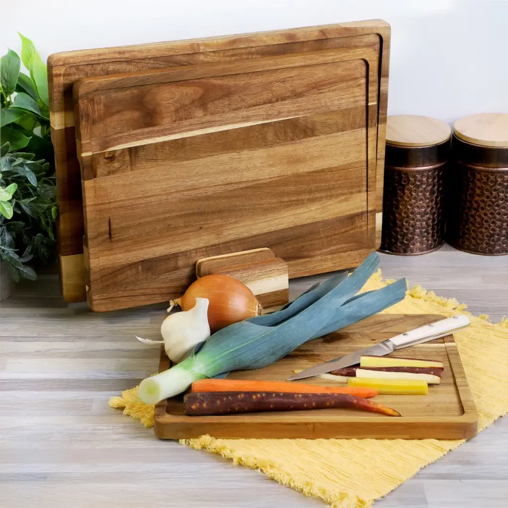 Megachef 3 Piece Acacia Wood Cutting Board Set With Base