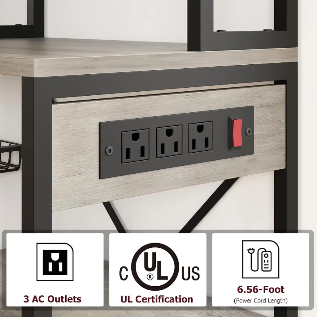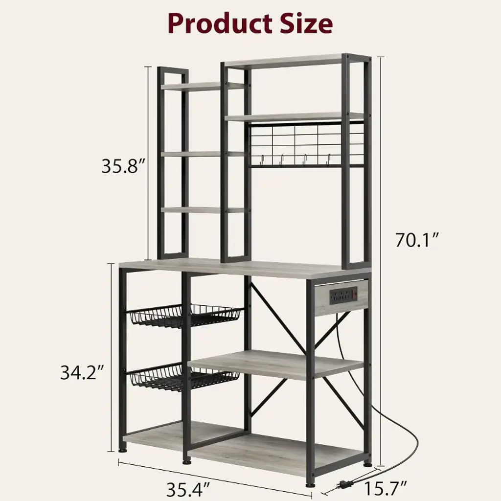 Microwave Stand, With Storage, With Power Output, 7-tier Kitchen Bakers Racks, With Hook, Baker Rack For Kitchen, Dining Room, Bakery