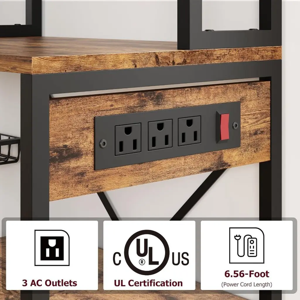 Microwave Stand, With Storage, With Power Output, 7-tier Kitchen Bakers Racks, With Hook, Baker Rack For Kitchen, Dining Room, Bakery