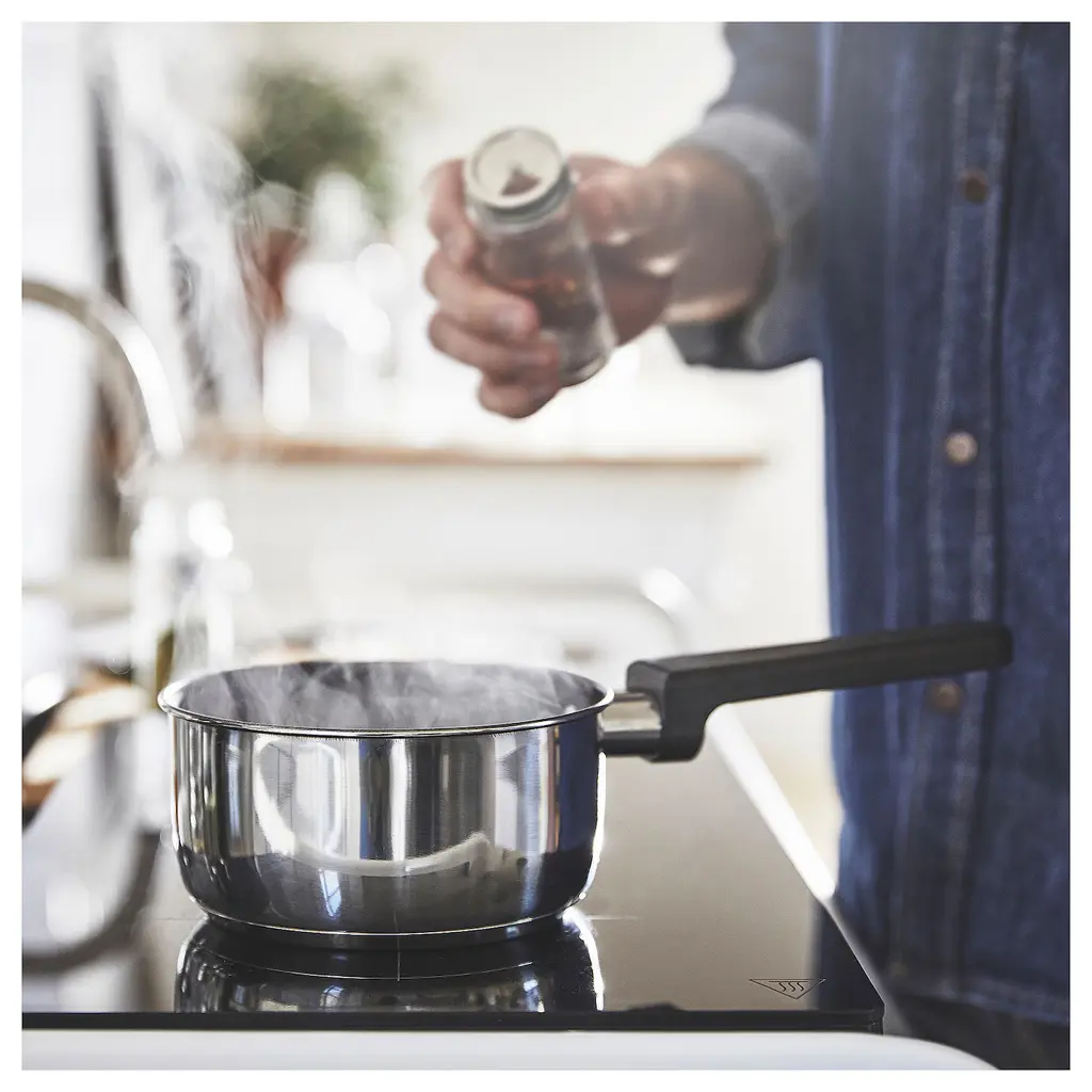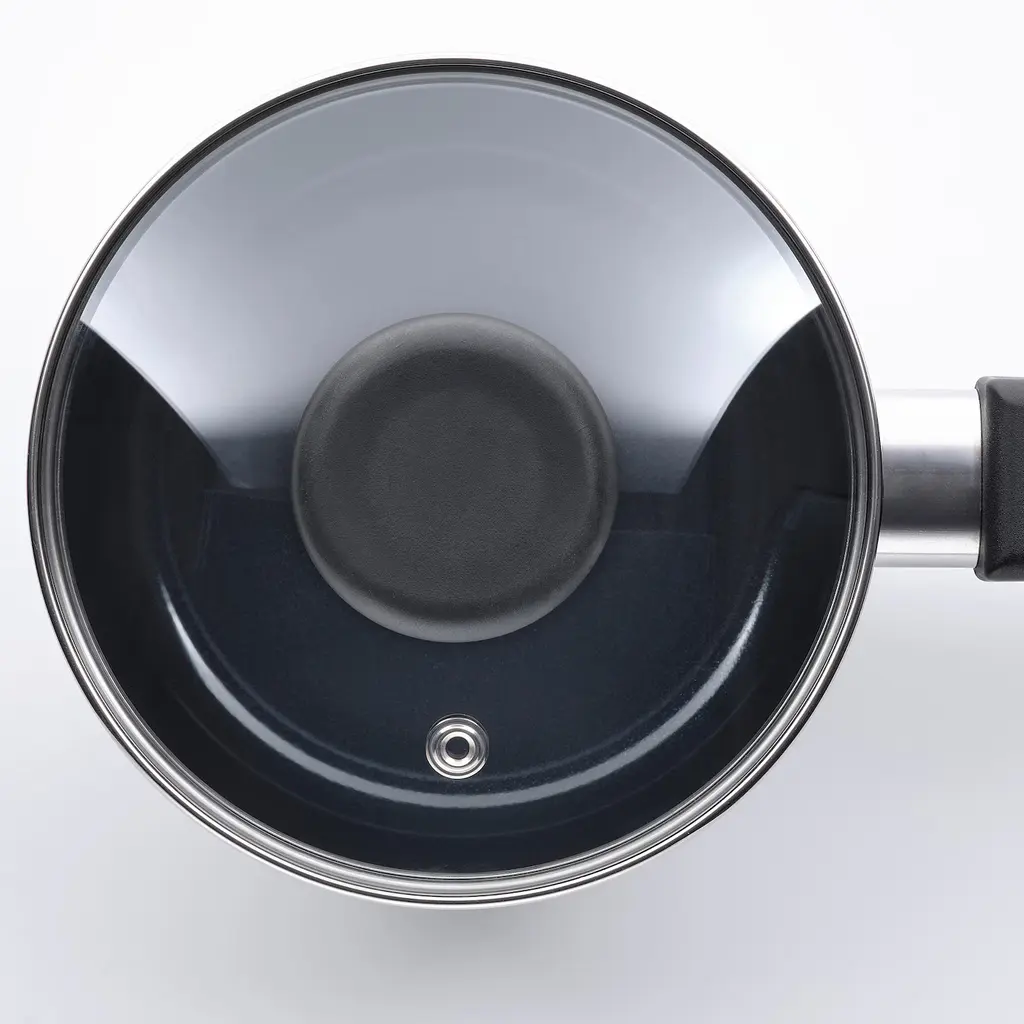 MIDDAGSMAT Saucepan with lid - non-stick coating clear glass/stainless steel 1.1 qt. A great start to your everyday cooking – with all the necessary functions that make cooking easier and more fun. Works well on all types of cooktops, including induction.