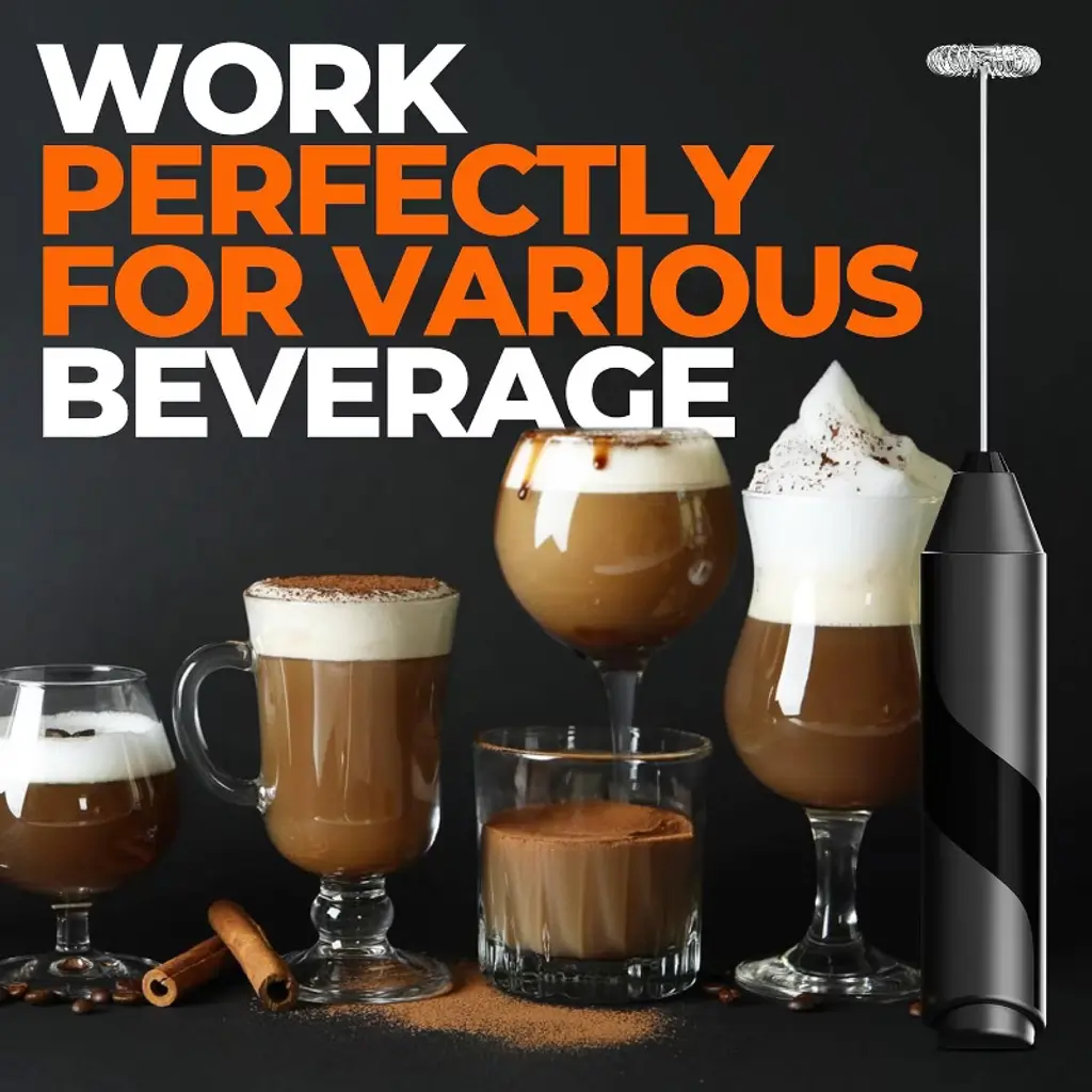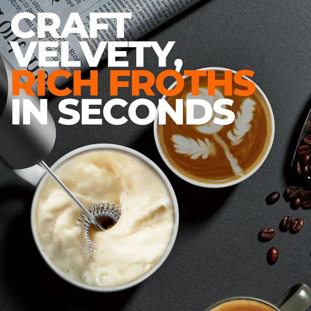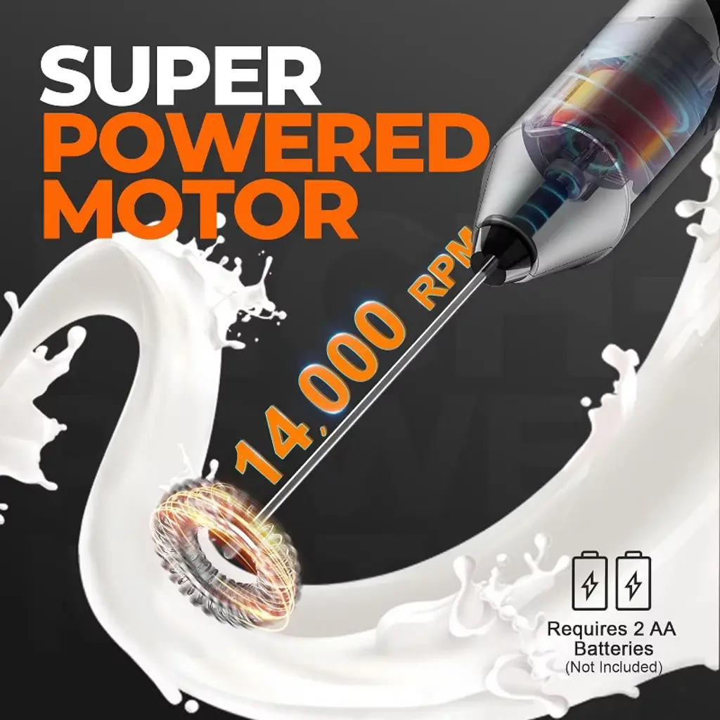 The EZBASICS Handheld Milk Frother delivers rich, creamy foam in just 15-20 seconds with its powerful 14,000 RPM motor. Whether you're a coffee novice or an enthusiast, it creates silky smooth milk foam for lattes, cappuccinos, and other coffee drinks with a simple one-click operation. This versatile frother is also perfect for mixing matcha powder, hot chocolate, eggs, powdered drinks, and more, making it a multifunctional tool for any kitchen. ? Built to last, the frother features a durable 304 food-grade stainless steel whisk, ensuring safety and long-lasting performance. The ergonomically designed handle offers a comfortable grip, even during extended use. Cleaning is a breeze, just place the whisk under tap water and turn it on briefly to rinse, while the handle should be wiped with a damp cloth. Powered by 2 AA batteries (not included), it's compact, lightweight, and easy to store in a drawer or carry on-the-go. ? With its sleek design and multifunctional capabilities, the EZBASICS milk frother makes a perfect gift for coffee lovers and is ideal for holidays and special occasions like Halloween, Christmas, and birthdays.