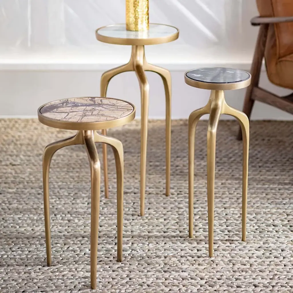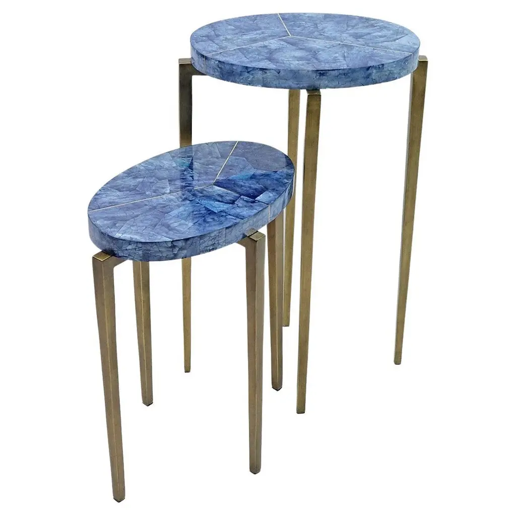 Furnish your home with beautiful statement pieces when you bring the Mixer Tables Set by Regina Andrew into your home. This collection of tables is composed of fine steel. Each table in this set boasts slender legs which sinuously contour, allowing the individual tables to rest at varying heights. The eye is drawn to the intricately textured table surfaces, which collectively give this set a multi-colored appearance. These tables are durably built and can be effortlessly placed over your transitional rugs.