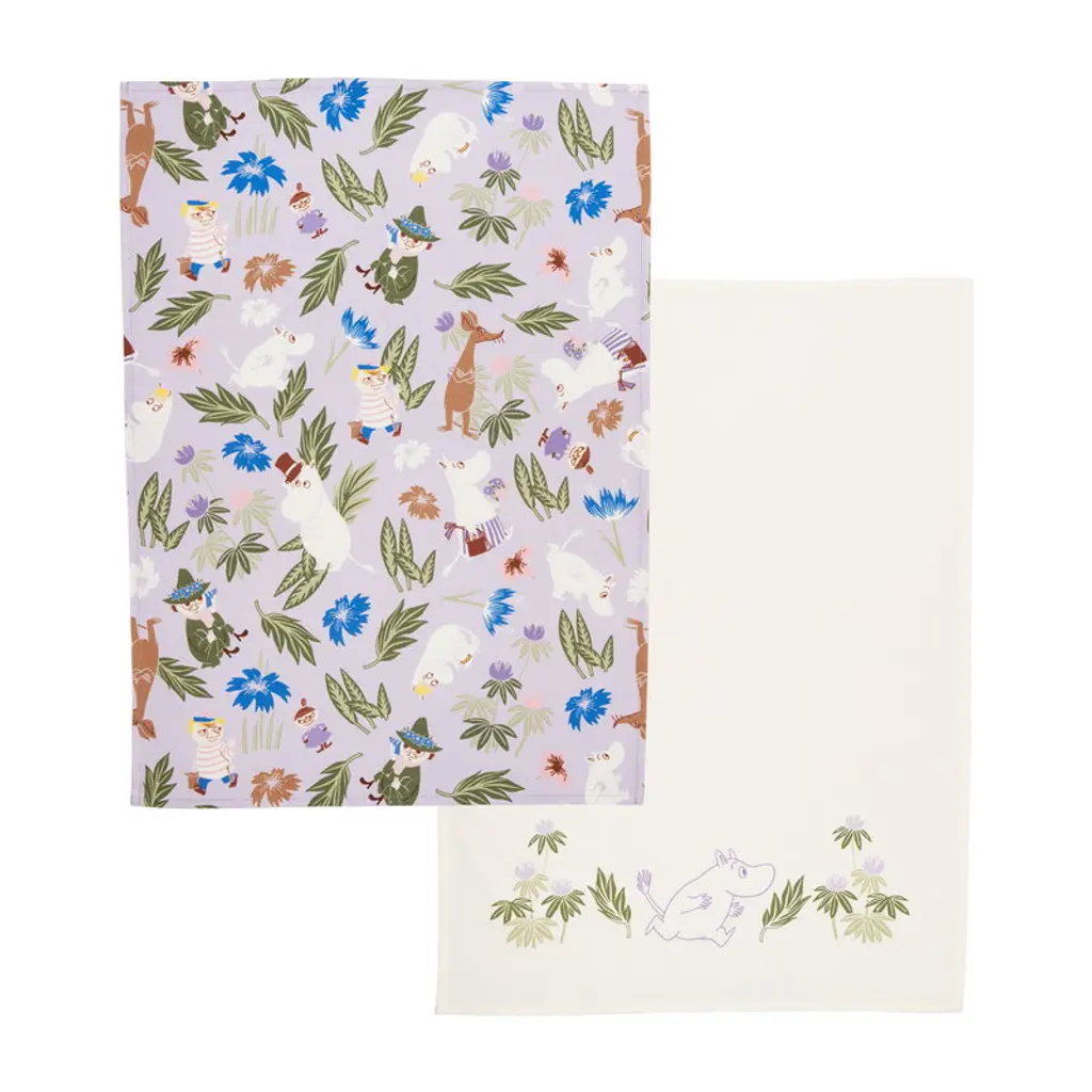 The Moomin pot holder set by Moomin Arabia brings the magical atmosphere of Moominvalley to every Moomin fan's kitchen! These lilac pot holders feature familiar Moomin characters surrounded by blooming summer flowers and lush greenery. Finished with hanging loops, the Moomin pot holders are made from 100% cotton and filled with polyester.