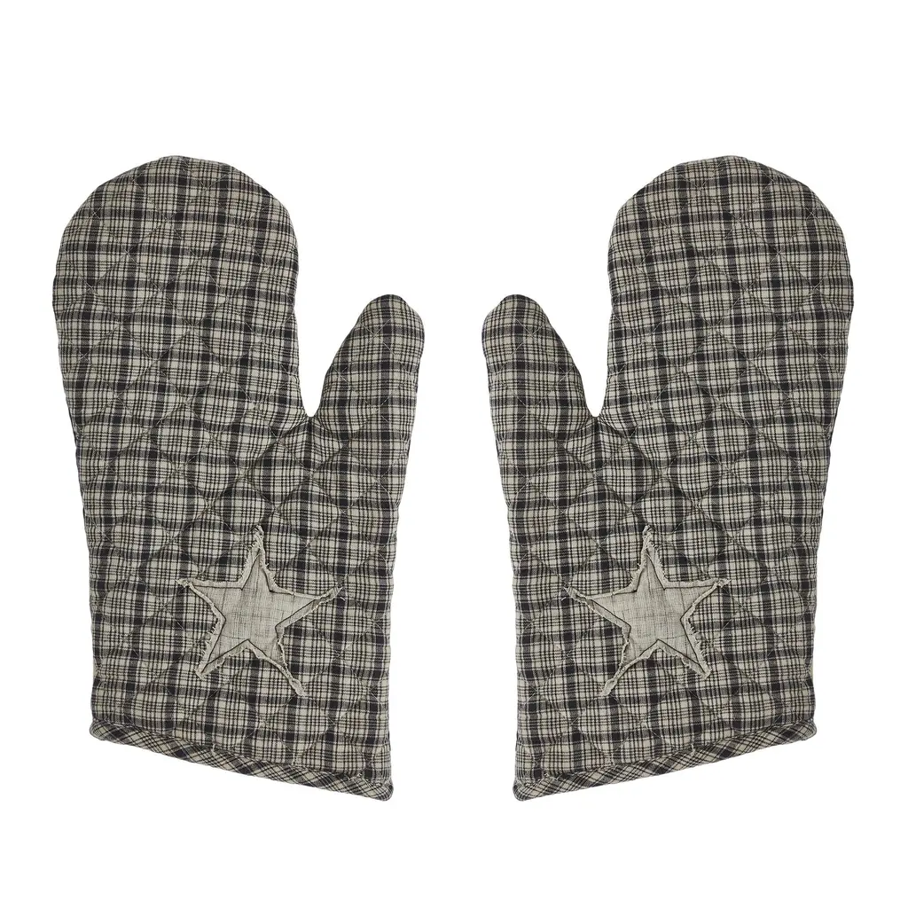 Elevate your country-themed kitchen with the VHC Brands Cotton Oven Mitt Set of 2 from the My Country Collection. These 12.5x8-inch oven mitts are not only heat-resistant but also feature charming star appliques in a deep navy hue, bringing Americana charm to your cooking space. Crafted with heavy-duty cotton, these mitts offer a flat weave textured grip for excellent control, making them ideal for baking, cooking, or grilling. Designed for both men and women, these oven mitts ensure your hands are protected when handling hot cookware. This set of oven mitts is perfect for any cooking enthusiast, adding a touch of Americana style to your kitchen while providing essential heat resistance for all your baking, cooking, and grilling needs. Cooking with confidence and flair has never been easier with these durable, stylish, and functional oven mitts.
