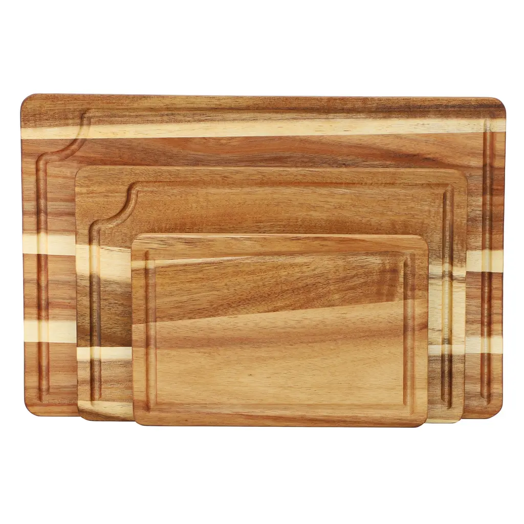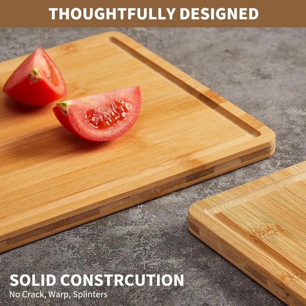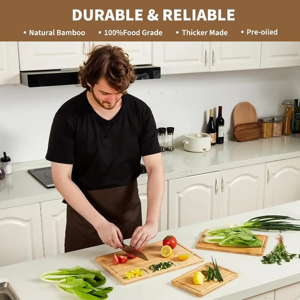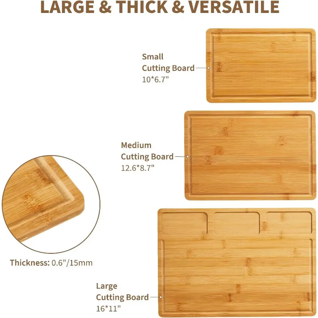 Natural Bamboo Cutting Board Set For Kitchen, 3-piece Kitchen Chopping Boards With Deep Juice Grooves, Built-in Handles & Compartments, Ideal