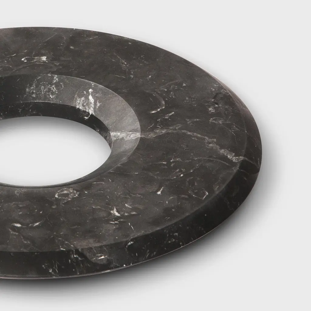 Trivet in Nero Marquinia marble, designed by Ivan Colominas. Size: 26 x 2 cm, smooth finishing. Commercial name: Myron, Materia e Tavola collection by the Spanish Designer Ivan Colominas. Available also in White Michelangelo marble. Made in Italy, hand finished.Sculptural, bright white, well-defined and multi-fold. Colominas has created a table service inspired by Angelo Mangiarotti’s soft lines, exalting the shape and structure of objects that characterise the exploration of one of the greatest pleasures afforded us, food.Mmairo loves wining and dining, good food and entertaining and, it loves marble. In the kitchen it is the perfect material: pure, smooth and easy to clean. Far from the monumentality by which it can be defined, this luxurious material has been shaped for an elegant table and impeccable service, into creative and unambiguous forms by the imagination of Spanish designer Ivan Colominas. The collection is a tribute to one of Italy’s great masters of design and architecture: Angelo Mangiarotti, creator of symbolic, marble design pieces, who is closely connected to the Apuan region and its craftsmen. The essential is visible, with a collection that offers infinite applications: serving, decorating, presenting, containing, tasting. The “material is served”, flawless and delectable.
