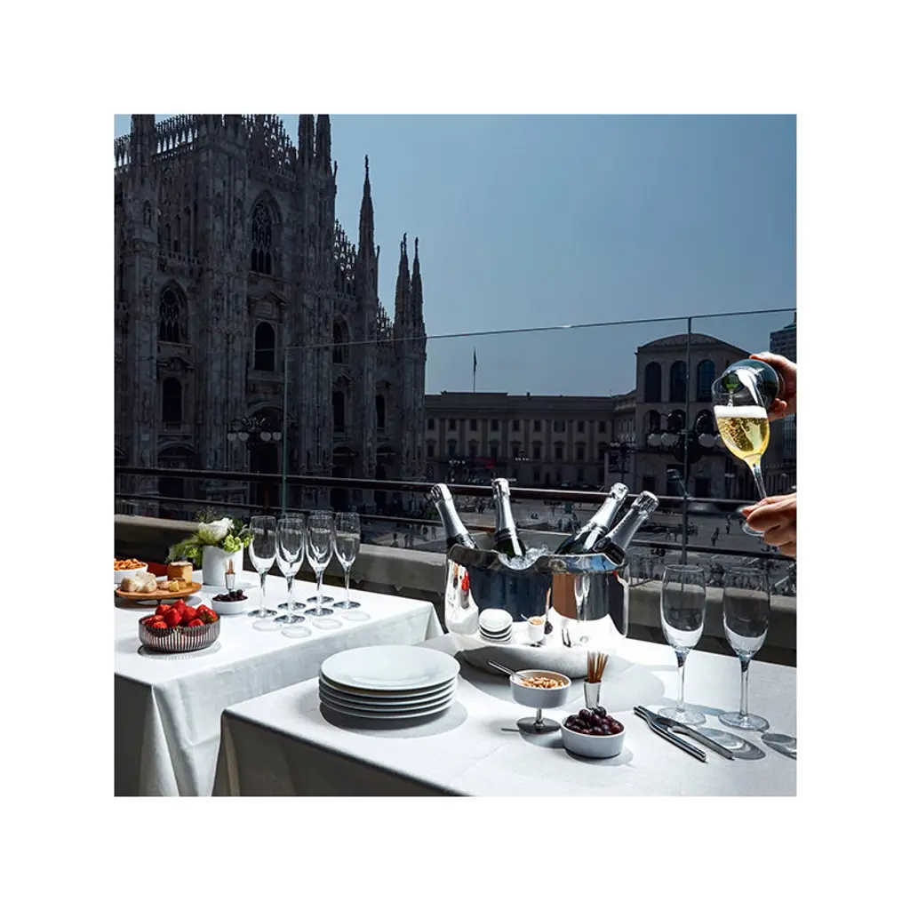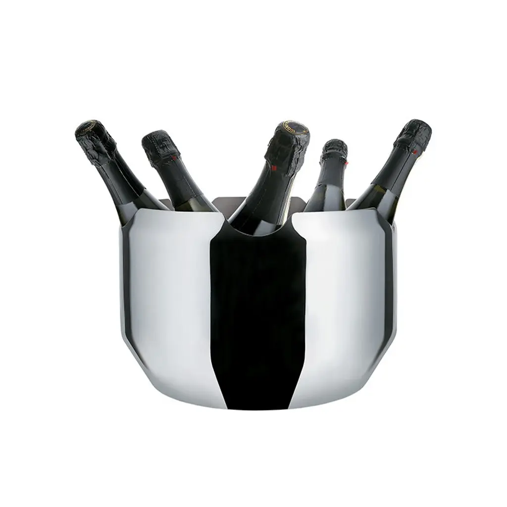 Noe wine cooler, designed by Giulio Iacchetti for Alessi, fits up to five bottles of wine or champagne. The elegant cooler is made of stainless steel.