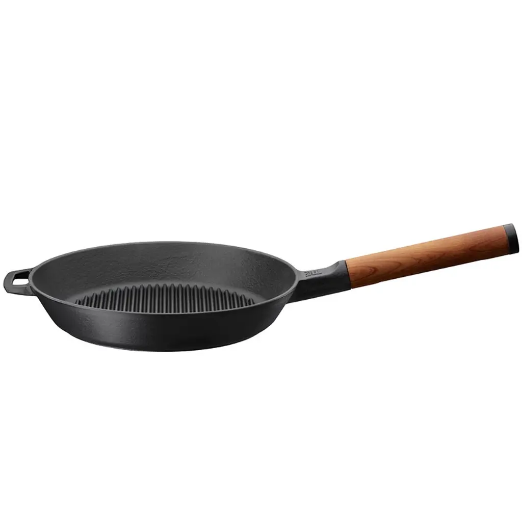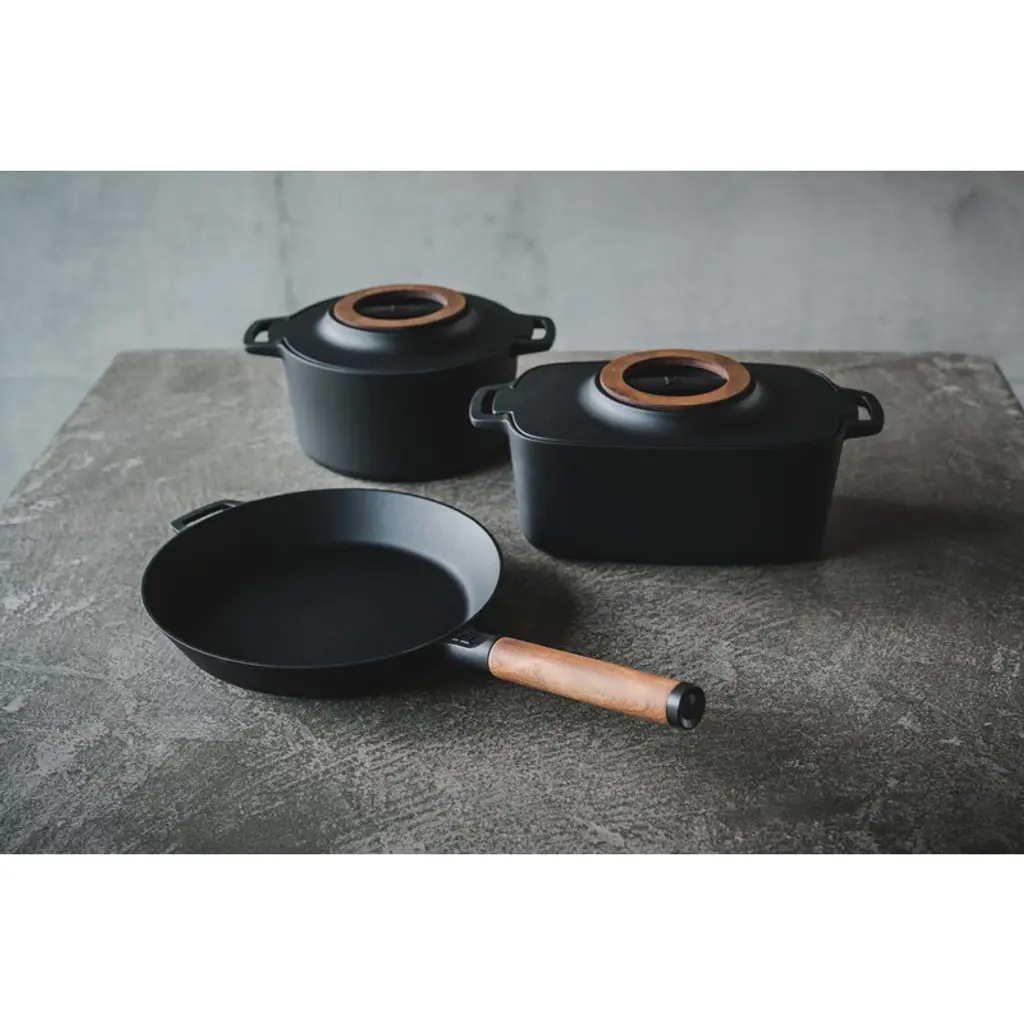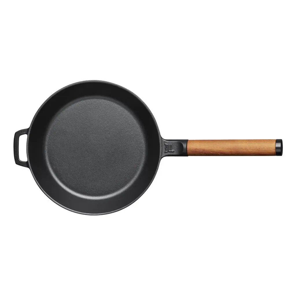 Fiskars Norden cast iron frying pan with removable wooden handle is a member of Fiskars' top-quality cookware range inspired by Nordic cooking traditions and Finnish knife-making heritage. Due to the unique Thermium mineral treatment, the pots and pans of the collection have a non-stick surface that is suitable for high temperatures. Thermium treatment also allows you to pre-fry the ingredients before further oven cooking. The pan is suitable for all hobs, even induction. The pots and knives of the collection are made in Finland using strong, durable and easy-to-maintenance materials such as steel, cast iron and wood. Fiskars Norden is a winner of Australia's Good Design Award 2018 and the Red Dot Design Award 2018.