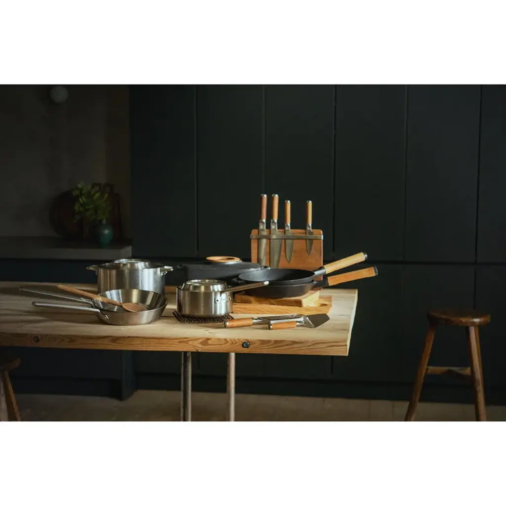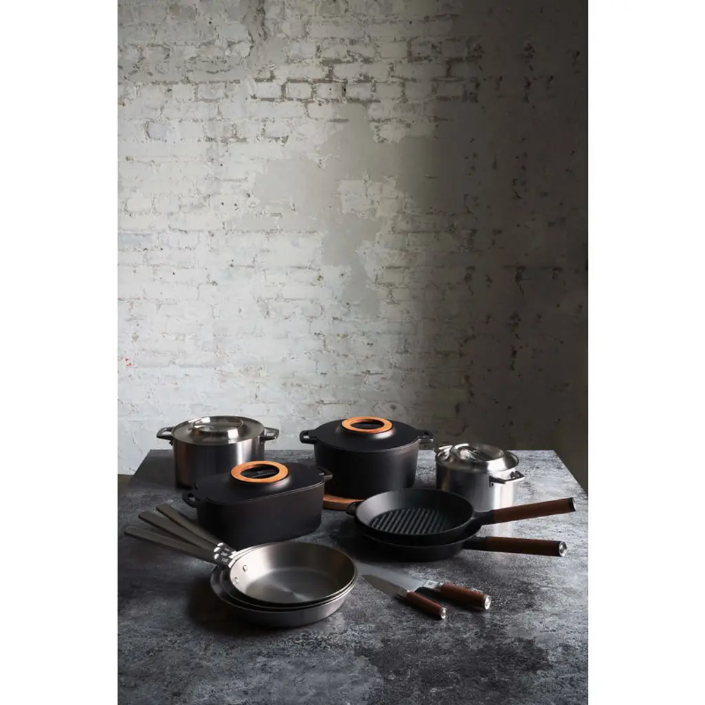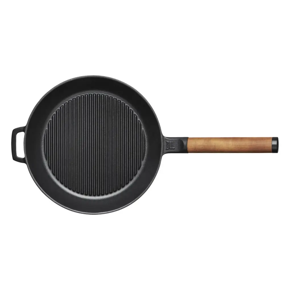 Fiskars Norden cast iron grill pan with a removable wooden handle is a member of Fiskars' top-quality cookware range inspired by Nordic cooking traditions and Finnish knife-making heritage. Due to the unique Thermium mineral treatment, the pots and pans of the collection have a non-stick surface that is suitable for high temperatures. Thermium treatment also allows you to pre-fry the ingredients before further oven cooking. The pots and knives of the collection are made in Finland using strong, durable and easy-to-maintenance materials such as steel, cast iron and wood. Fiskars Norden is a winner of Australia's Good Design Award 2018 and the Red Dot Design Award 2018.