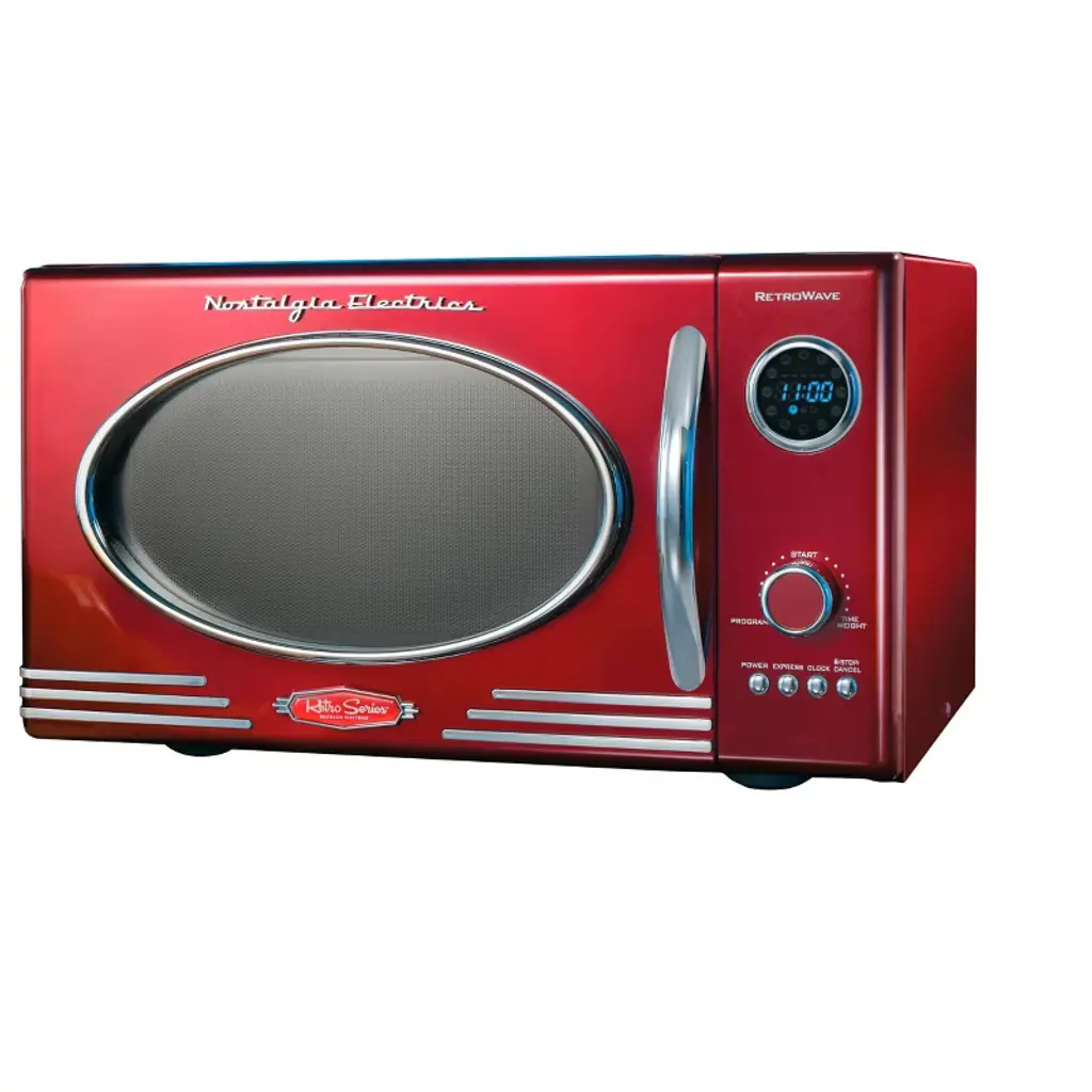 With a beautiful and sleek retro design, this microwave is sure to stand out in any kitchen. It features 12-pre programmed cooking settings and a bright LED display, making usability simple. Five power levels and 800-watts of power are perfect for reheating leftovers or cooking food.