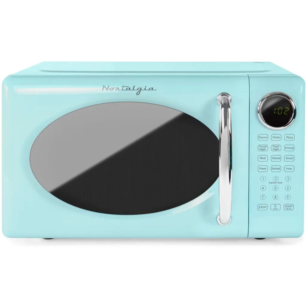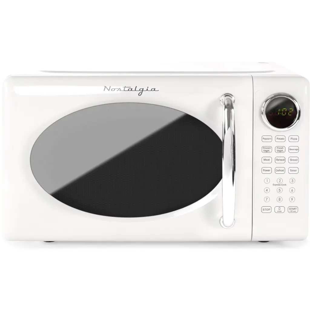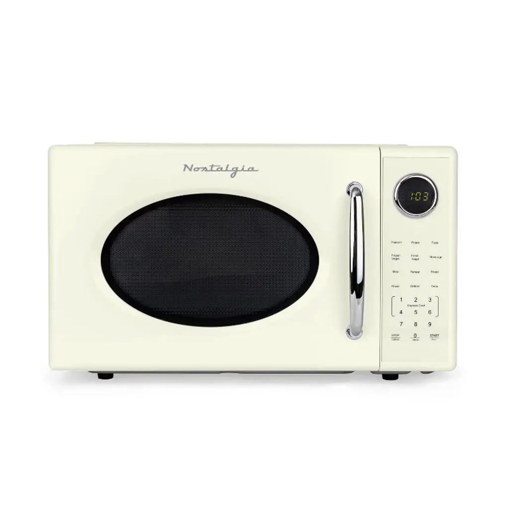 Bring classic style and modern convenience into your kitchen with the Nostalgia Retro Microwave Oven! This charming microwave, with its iconic retro design, will not only add a touch of style to your space but also revolutionize the way you cook and heat your favorite meals. Convenience is at your fingertips with the easy to operate button control panel, which allows you to cook by time, adjust power levels, select an auto-cook program, defrost, or quick start. Enjoy easily prepared a variety of meals, from late-night snacks to a family meal.
