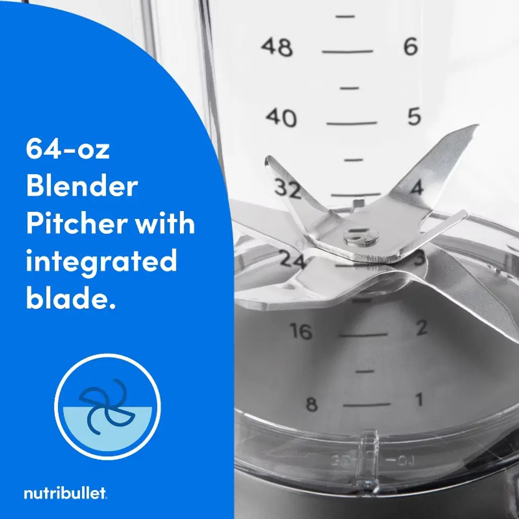 Full-spectrum speed, simple functionality, and a smart-sensing auto cycle. Say hello to the nutribullet SmartSense™ Blender. This sleek, full-sized blender is designed for ease and precision, with 1400 Watts of power and 5 variable speed settings – the widest range of any nutribullet. It also features a smart auto cycle, which senses ingredient load and automatically adjusts speed, time, and function to deliver optimal results. The blender’s intuitive, streamlined interface offers easy navigation and perfect timing for every type of blend, while its durable 64-oz pitcher fits in ample quantities of your favorite fruits, veggies, nuts, seeds, and beyond. And with its refined silhouette and elegant, understated satin finish, it seamlessly complements any kitchen aesthetic.It's smart, it’s precise, it’s powerful and stylish. When it comes to kitchen essentials, this one makes good sense.